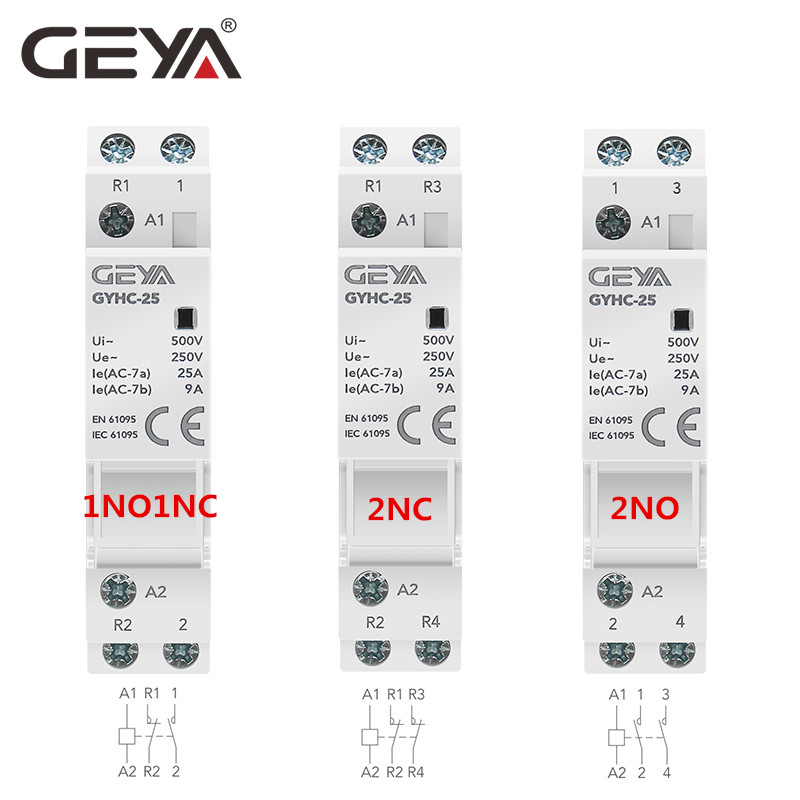 GEYA NEW Din Rail Automatic Household Contactor AC220V 2P 16A 20A 25A 2NC 2NO 1NO1NC 50/60Hz