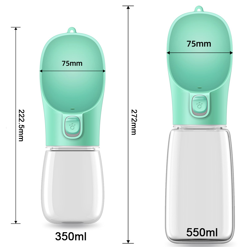 Durable & Food Grade Material: Made of premium food-grade plastic and material, our portable dog water bottle is safe and durable. Eco-friendly and recyclable. The pet water bottle is available in two sizes for your convenience.