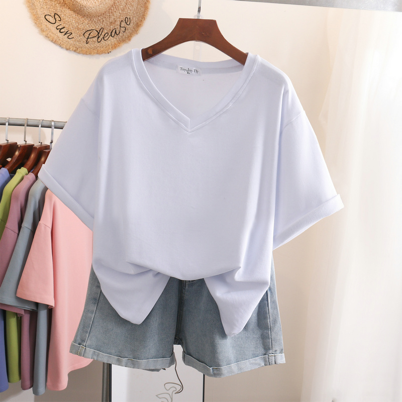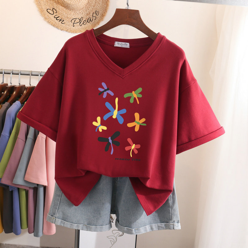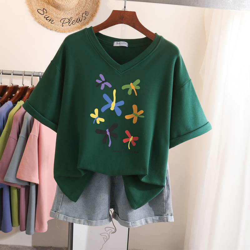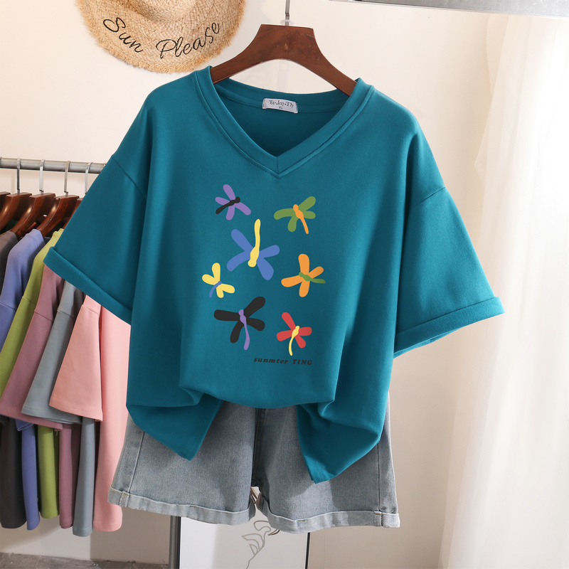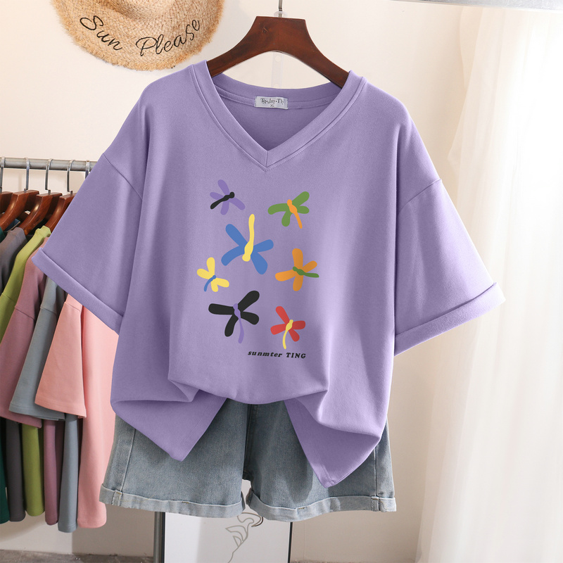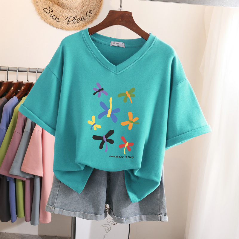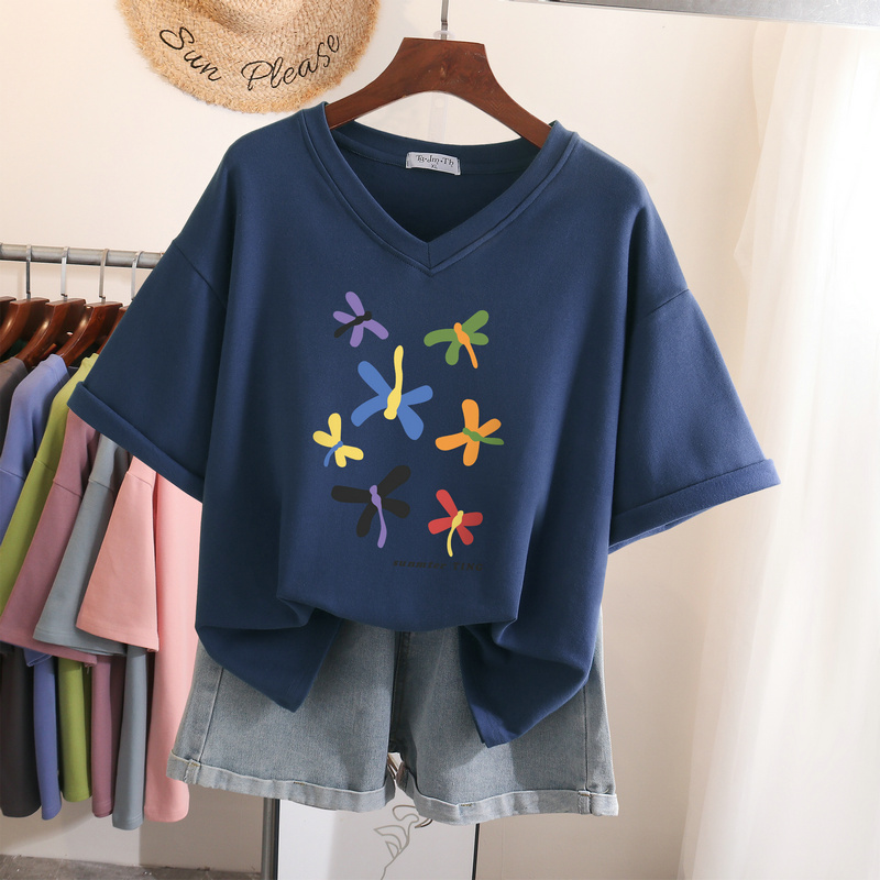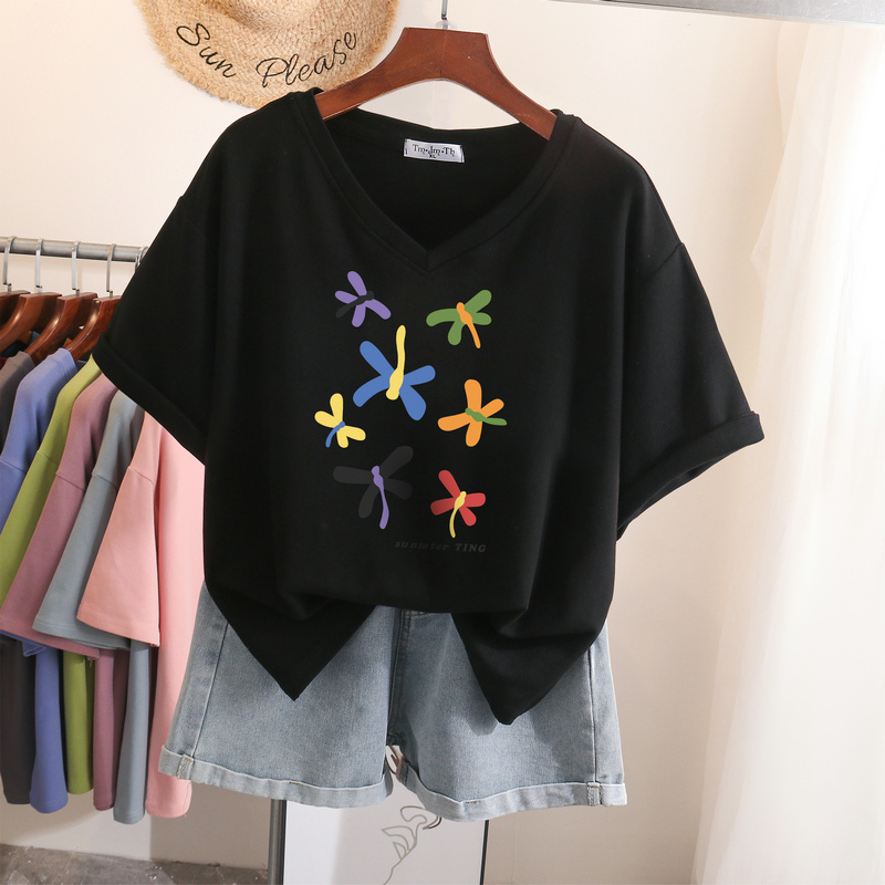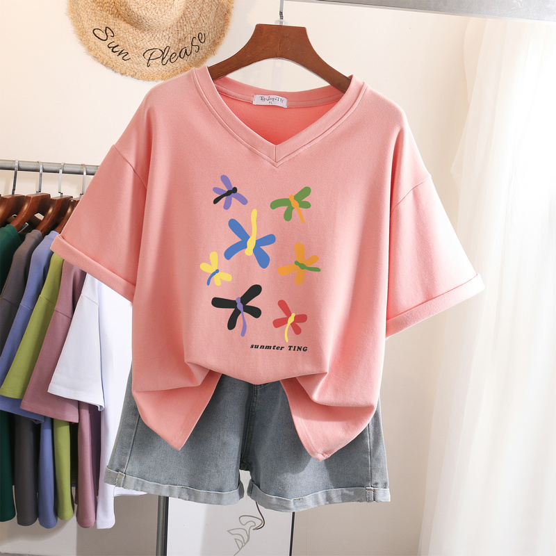EBAIHUI L-6XL T Shirt Plus Size Tshirt Short Sleeve Cartoon Women Top Summer Sweet Couple V Neck Oversized T Shirts