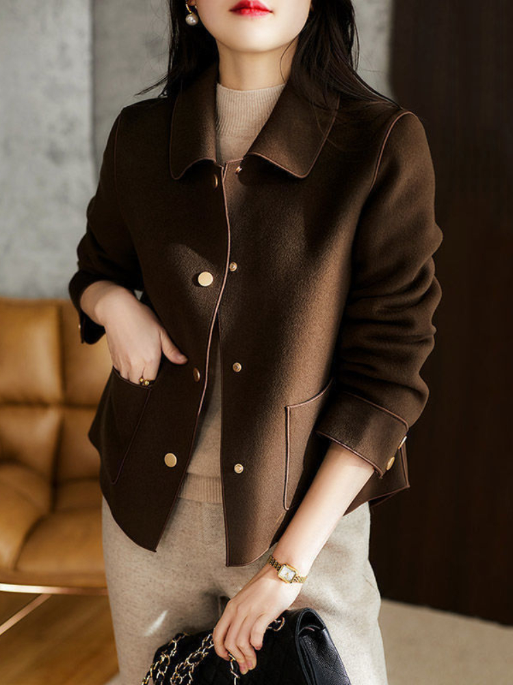 Elegant Women Coat Version Simple Solid Color Woolen Coat Temperament Loose Autumn Short Jacket Women