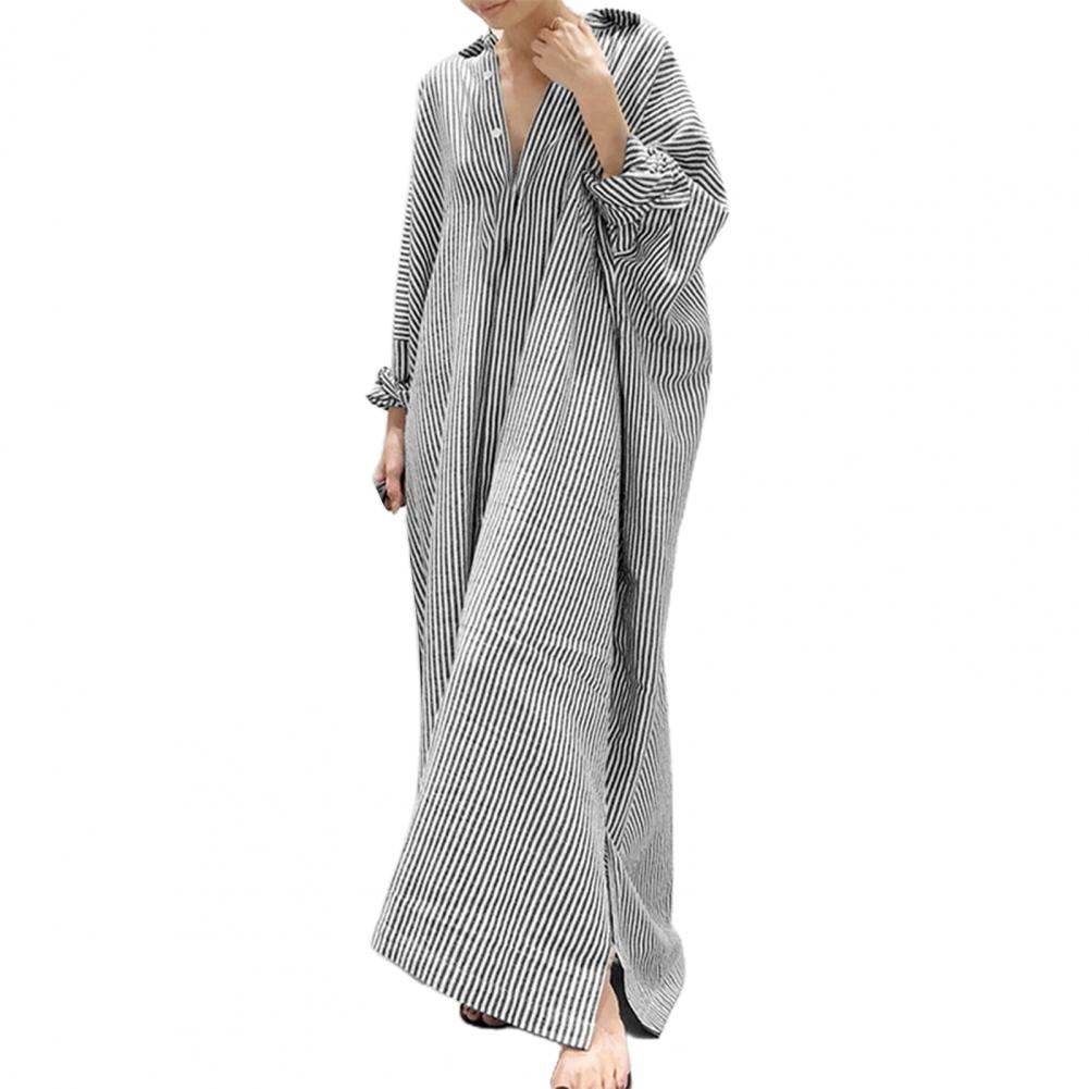 Elegant dresses for women Lapel Striped Dress Long Sleeve Buttons Maxi Long Dress Sundress vestidos elegantes para mujer