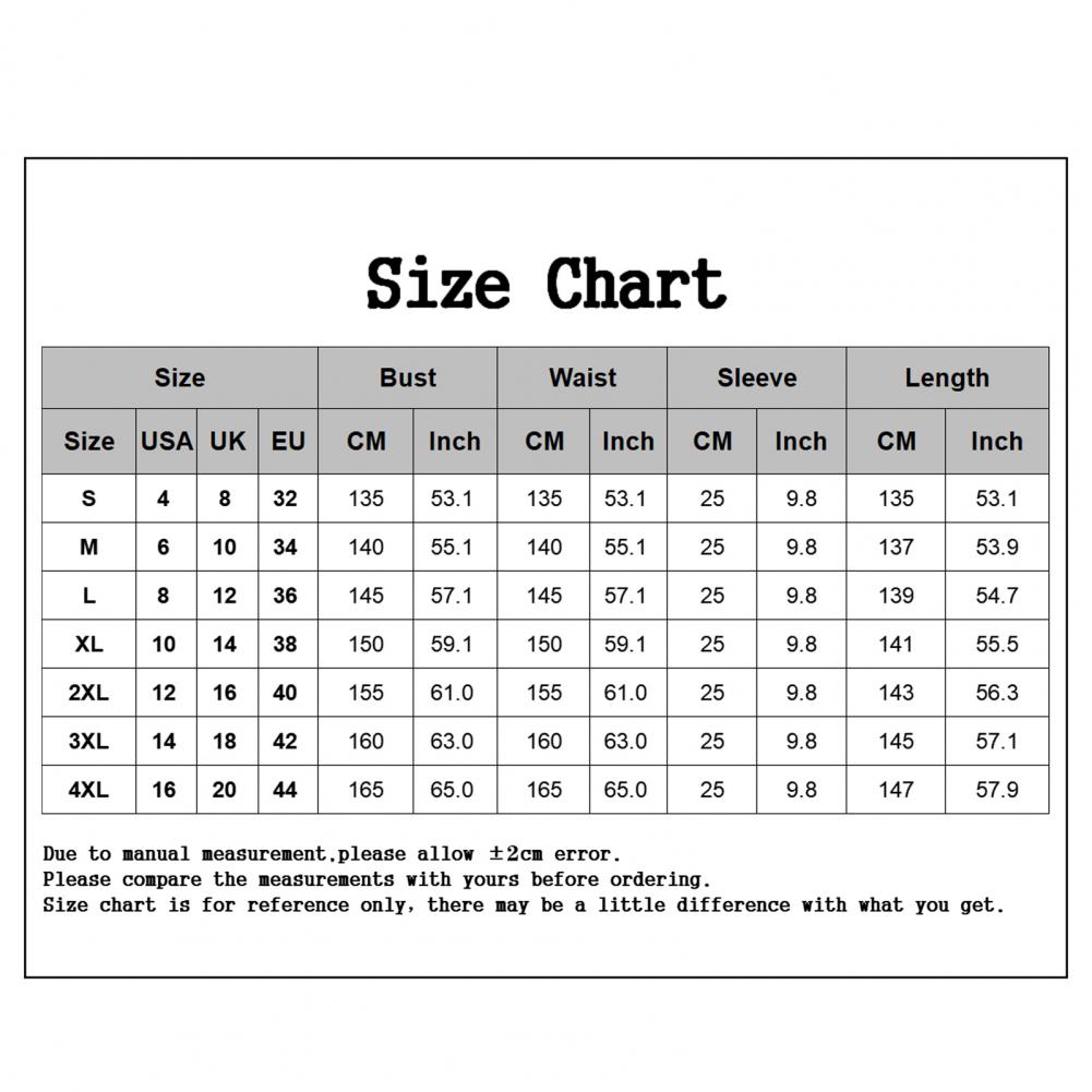 Size: XL, Bust: 150cm/59.1", Waist: 150cm/59.1", Sleeve: 25cm/9.8", Length: 141cm/55.5" (Approx.)