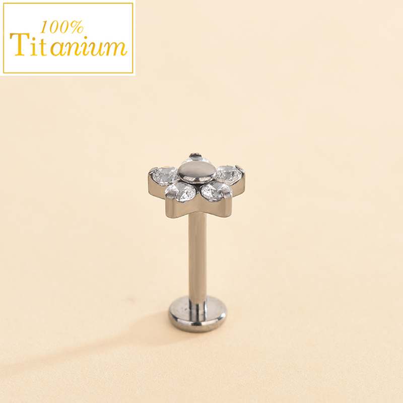 1PC F136 Titanium Labret Piercing Lip Studs Cartilage Tragus Helix Piercing Ear Nails Zircon Flower Earrings Body Perforated Jewelry