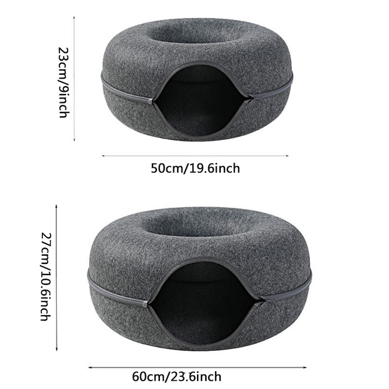 Felt Cat Tunnel Bed Doughnut Pet Cat Hideaway Nest Bed Puppy Cat Bed Cave Hideout for Cat Play Toys Pet Supplies Accessories