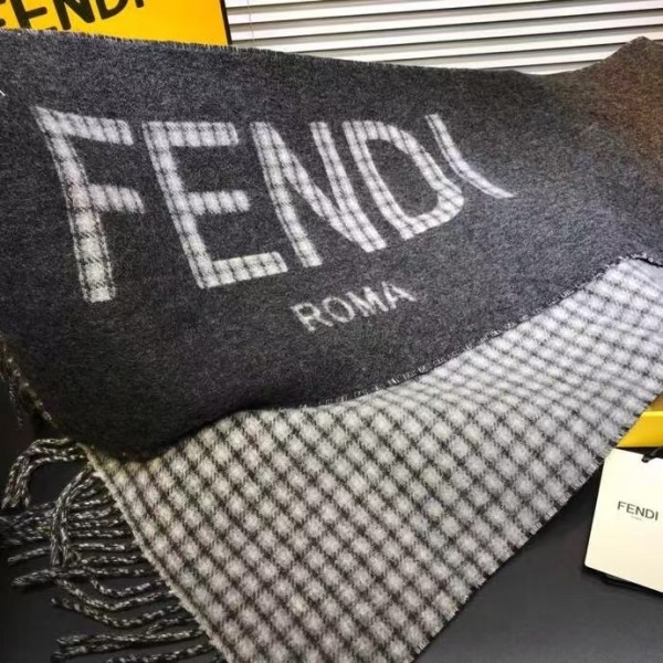 This timelessly elegant and luxurious Fendi scarf in soft wool and cashmere with Fendi Roma oversized lettering, lined with checked motif. Fringed hem, Its long, narrow shape enables it to be worn in many different ways.