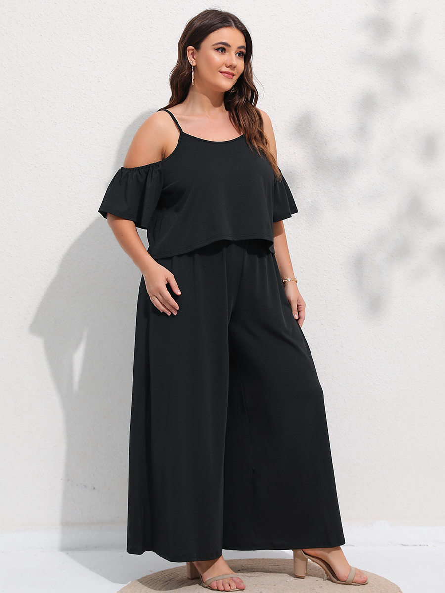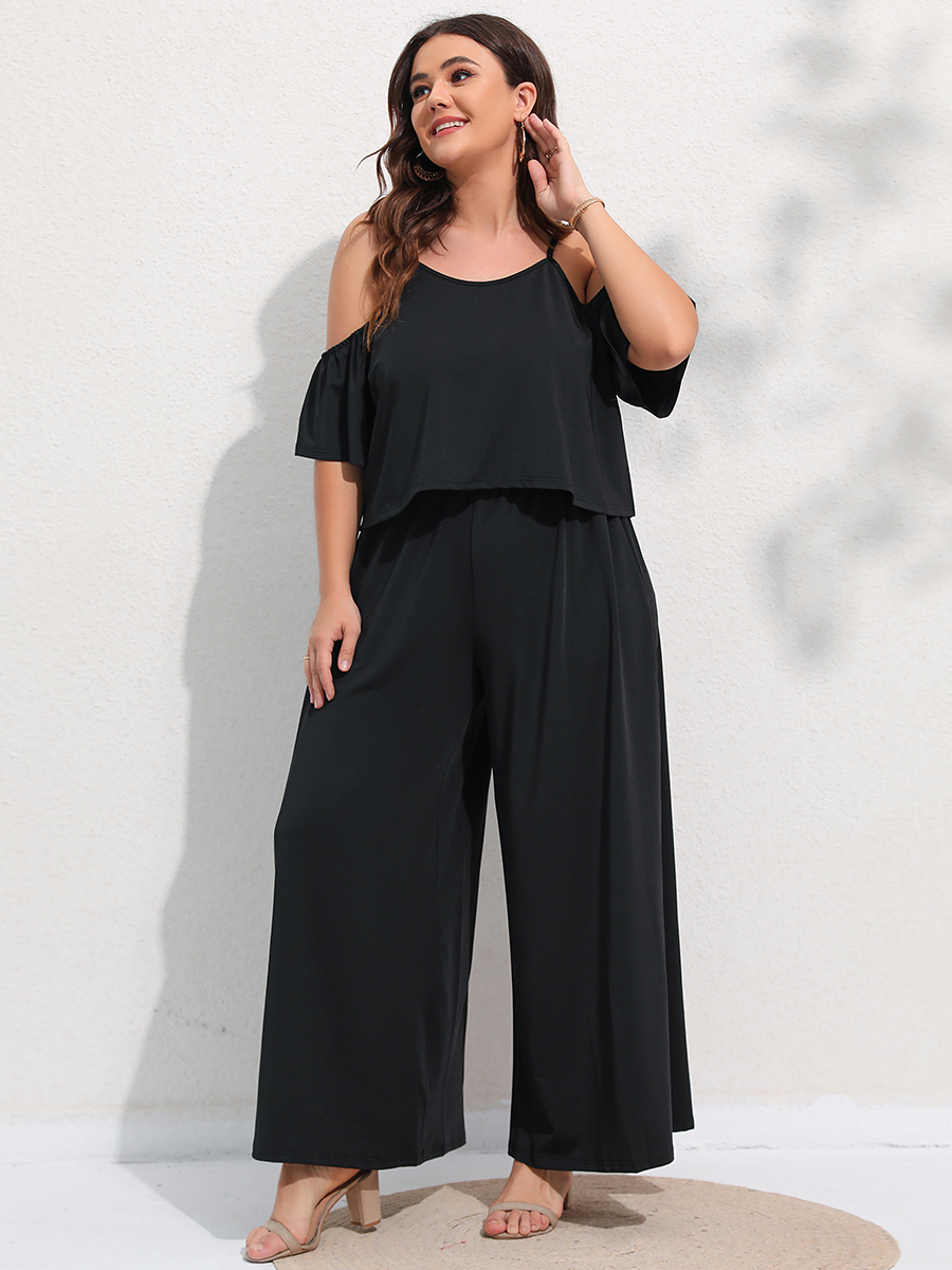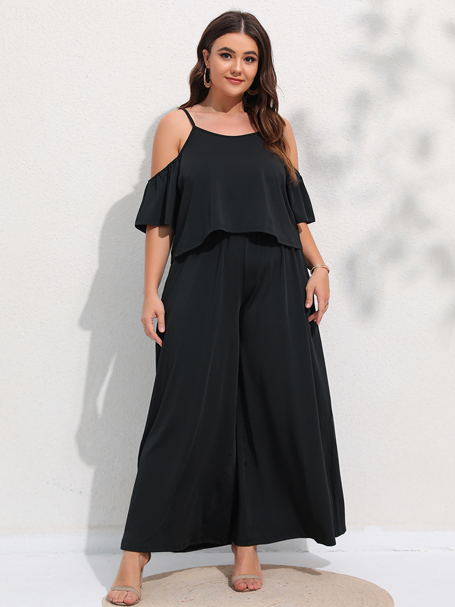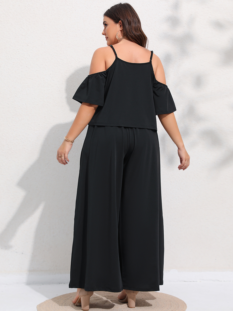 Finjani Cold Shoulder Top & Wide Leg Pants Plus Size Suit Set For Women