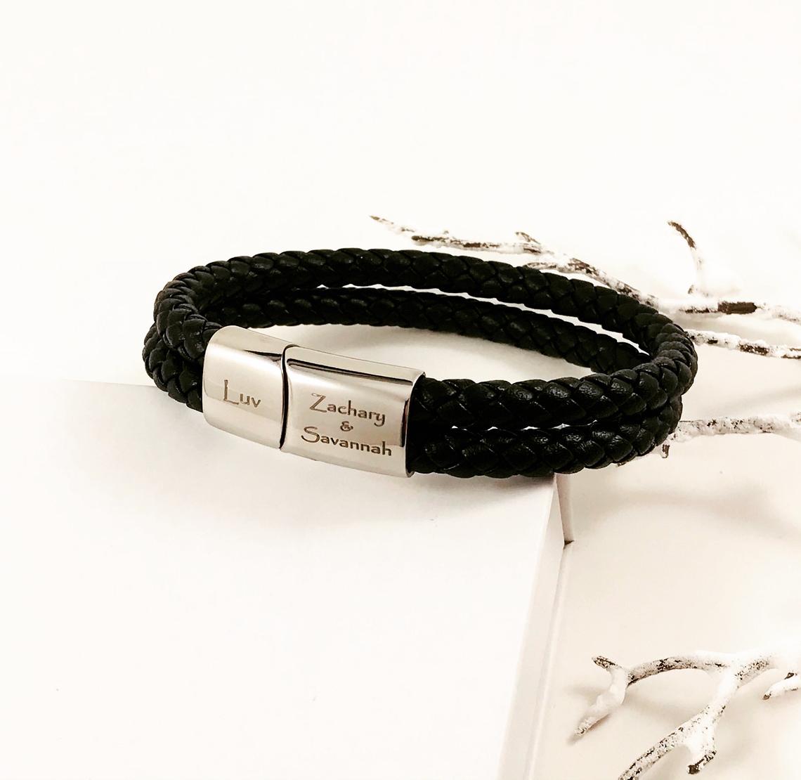 This customizable leather cuff bracelet makes the perfect gift for the man in your life, husband, dad, boyfriend or brother!