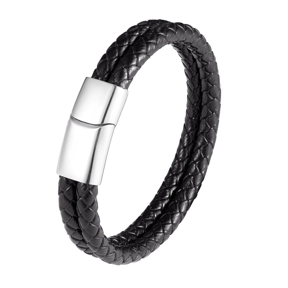 This bracelet is a deluxe, great quality product and is comfy to wear. Perfect for a modern, trendy man, it is stylish and trendy for every occasion, and can be worn every day. This design is hand braided using genuine leather great quality and is finished with a stainless steel secure magnetic sliding clasp. The bracelet feels and looks very nice on.