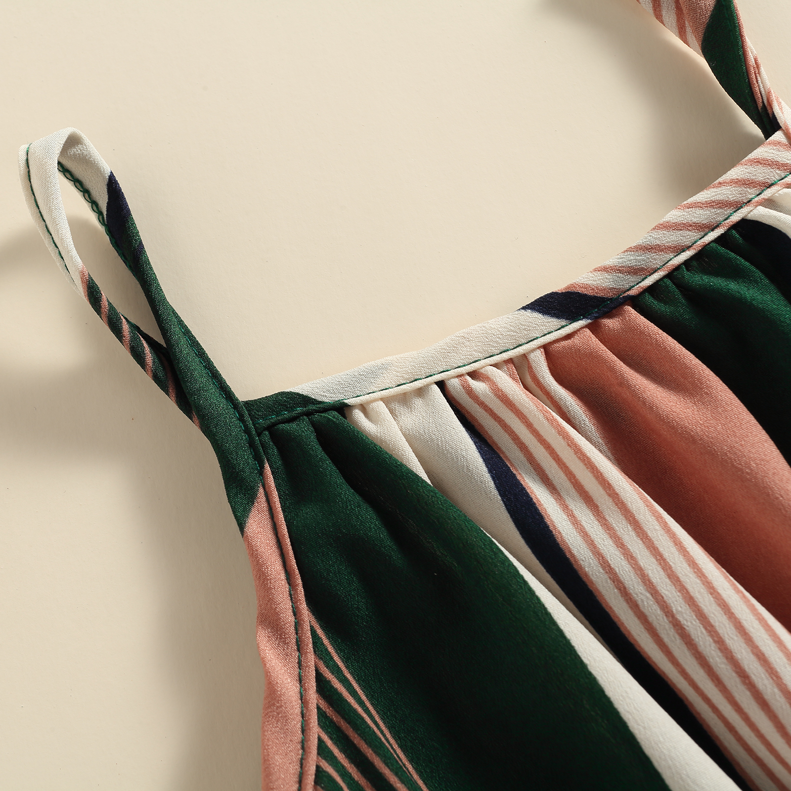 Girls Casual Bandage Sleeveless Suspender Jumpsuit Summer Stripe Printing Overalls Long Pants Children's Clothing