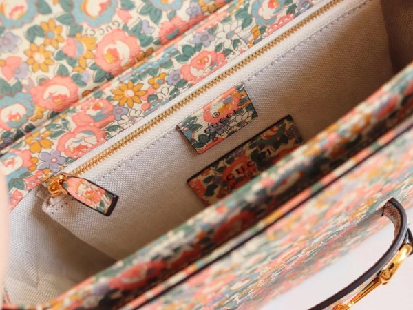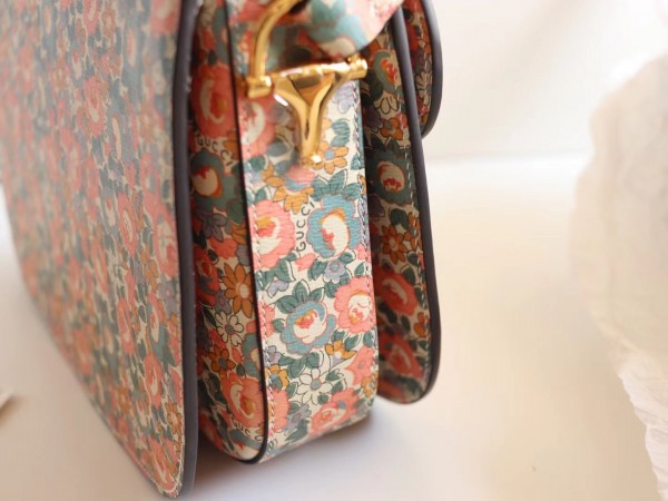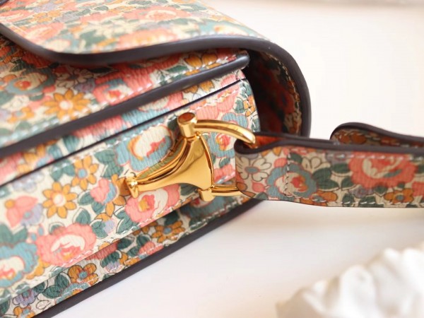 The Gucci Horsebit 1955 shoulder bag is introduced within an exclusive collaboration for Fall Winter 2020, presenting Liberty London’s emblematic floral prints within a special collection of accessories and ready-to-wear. With its collection of fine ornaments, fabrics and objets d’art from around the world, the Tudor revival luxury department store founded in 1875 invoked social change in interior design and dress to the point that the Art Nouveau period in Italy is called ‘Liberty Style’. A special mechanism adjusts the length of the shoulder strap so it can be carried on one shoulder or cross body.