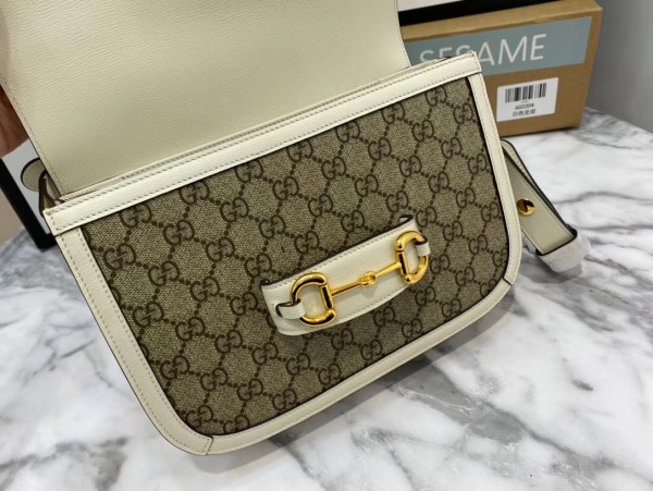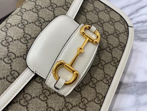 Gucci 1955 Horsebit Small Shoulder Bag With White Trim