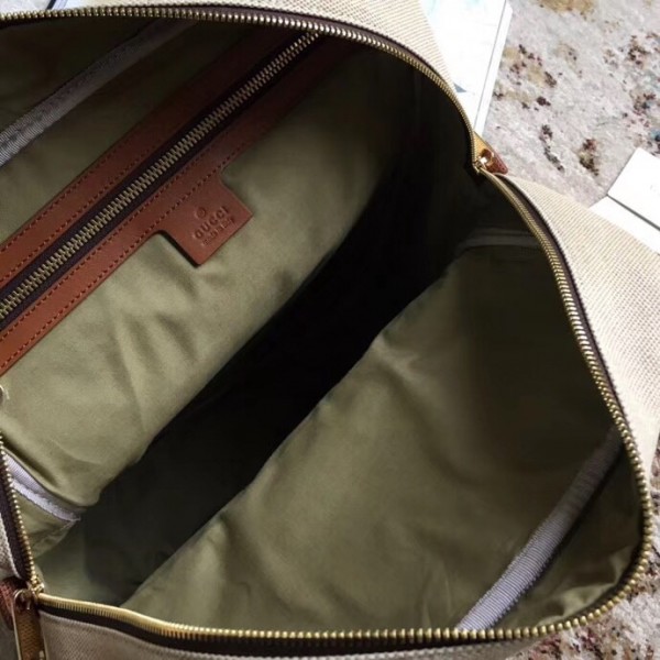 The classic backpack shape blends vintage appeal with traditional House codes in a softly structured shape. The distinctive Web is presented against beige canvas—a bi-colour woven fabric with a slight aged effect that enhances a vintage appearance. The rectangular shape is trimmed with leather and a small Interlocking G in gold-toned metal. New shapes and signature Gucci lines are reimagined in a mix of fabrics and trims imbued with an inherently summer feel.