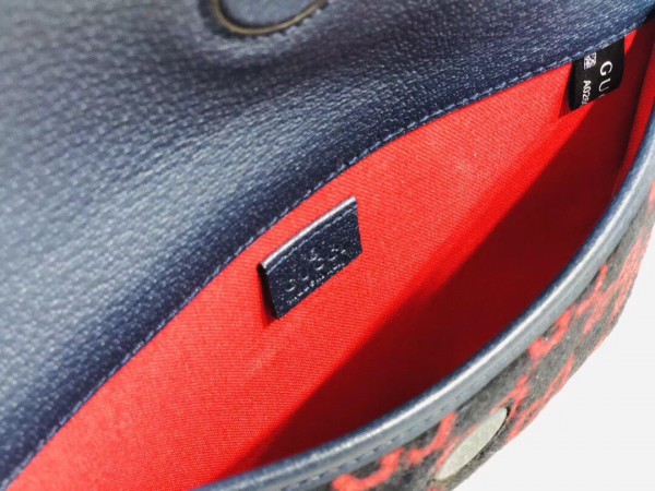 – Blue and red GG wool with blue leather trim
