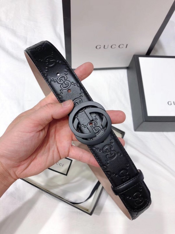 Offering an exciting update to a cult classic, Gucci introduces this belt. Featuring the new Interlocking G buckle to the fore and a debossed Gucci Signature leather strap, it packs a powerful sartorial punch whether you style it atop jeans or to cinch the waist of a billowing summer dress.