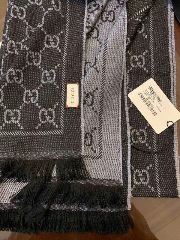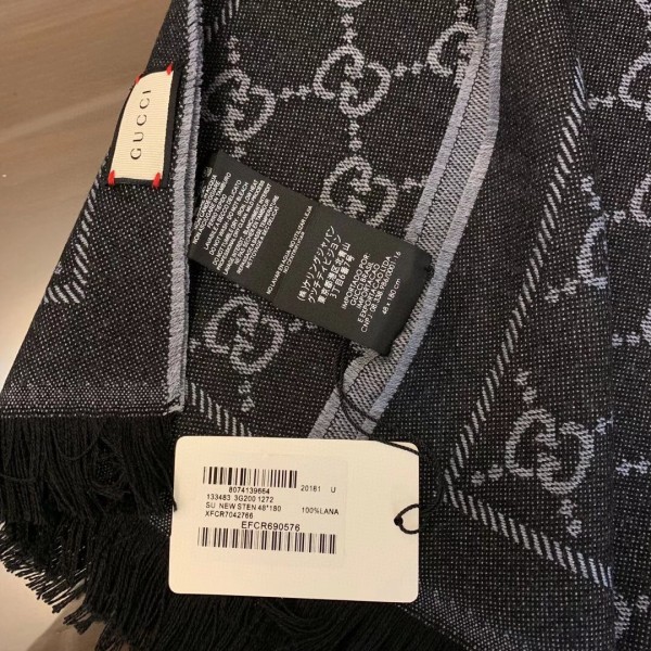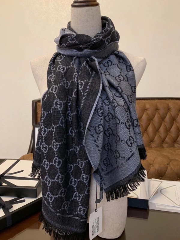 Refined with fringe edges, this double jacquard wool scarf features the House’s trademark GG pattern, first introduced in the ’70s. The combination of black and grey shades makes this a stylish and versatile accessory for every day.