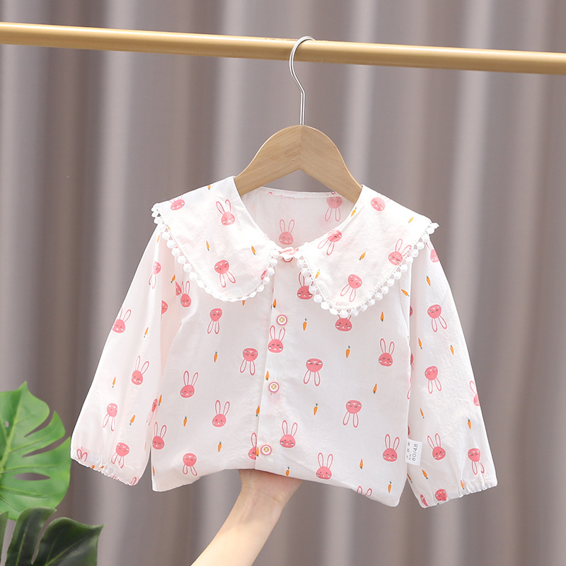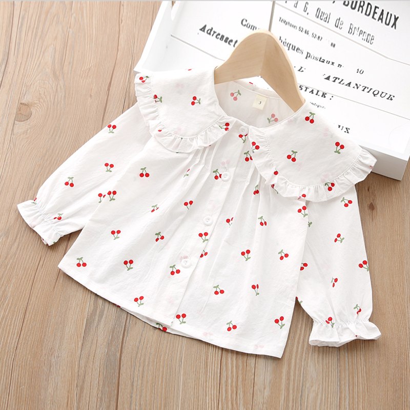 IENENS Girls Blouses Clothes Baby Spring Shirts Toddler Infant Cherry Print Tees Tops 1 2 3 4 Years Kids Cotton Shirt
