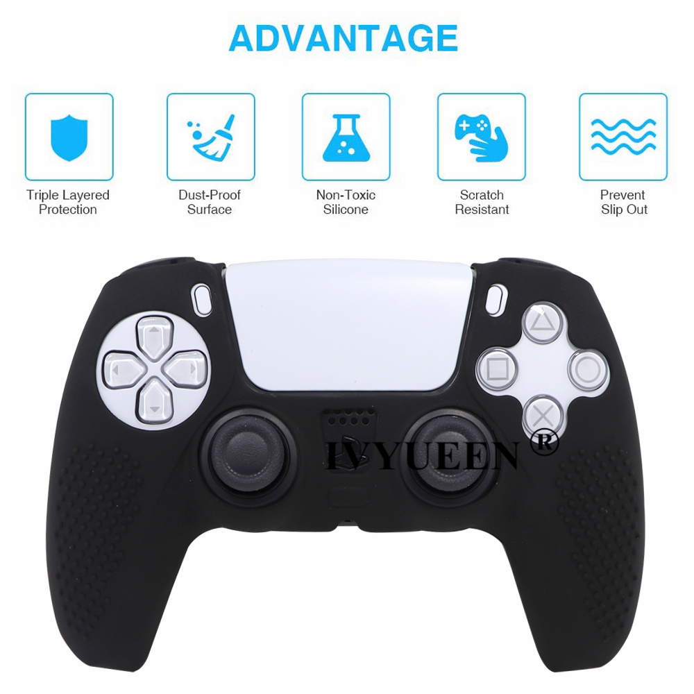 IVYUEEN Anti-slip Silicone Cover Skin for Sony PlayStation Dualshock 5 PS5 Controller Case Thumb Stick Grip Cap for DualSense Wireless Controller