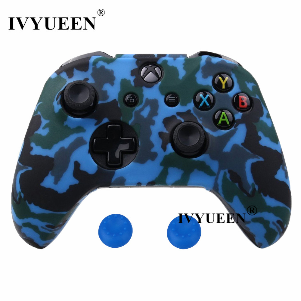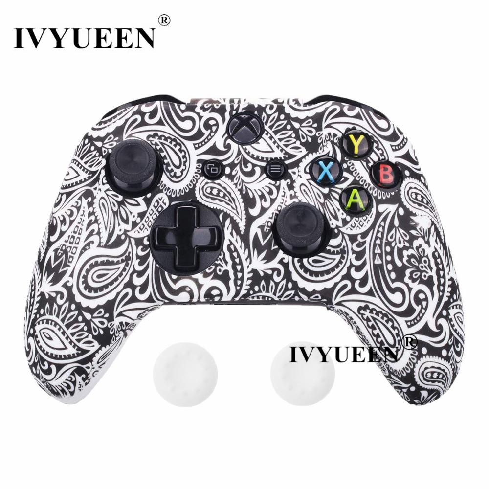 IVYUEEN Silicone Protective Skin Case for XBox One X S Controller Protector Water Transfer Printing Camouflage Cover Grips Caps