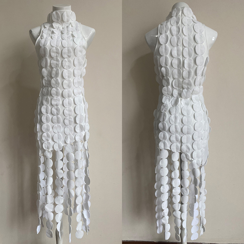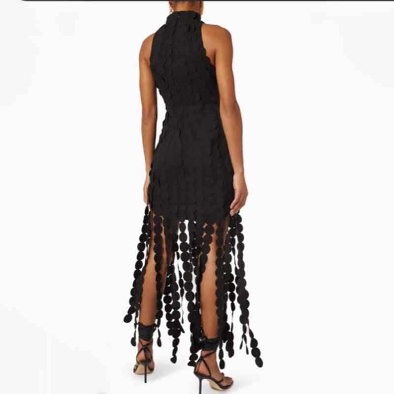 Irregular Hem Patchwork Tassel Asymmetrical Dress For Women Summer Autumn Sleeveless Slim High Waist Dresses LH581