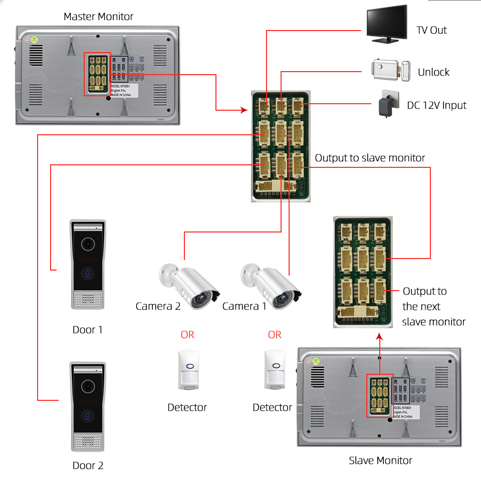 Support : 2 call panel + 4 indoor monitor+ 2 Analog camera& 2 PIR