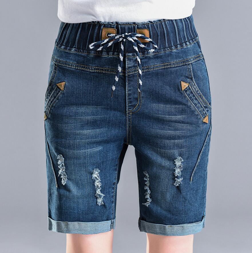 Jeans For Women Summer Kenn Length Pants Elastic High Waist Loose Jeans Hole Crimping Denim Shorts