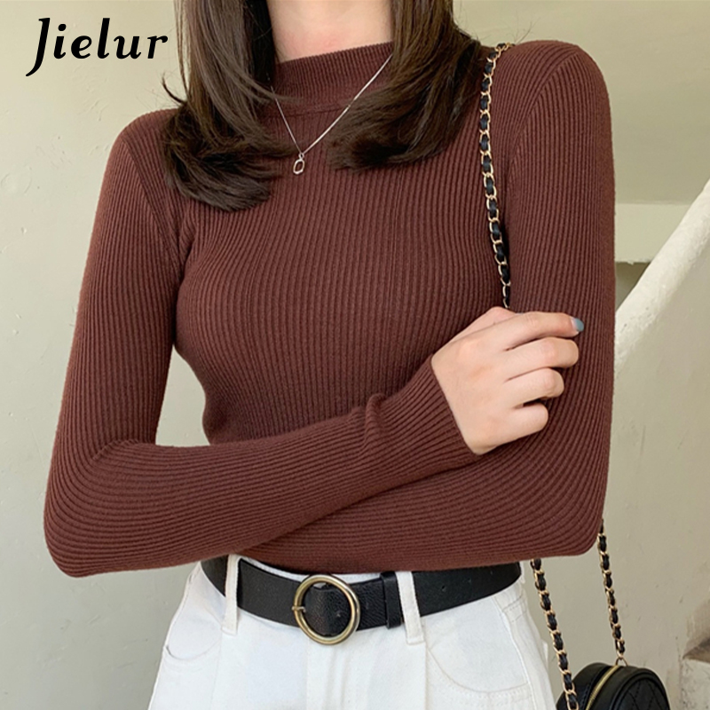 Jielur Solid Color Turtleneck Women Autumn Winter Knitted Sweaters Basic Primer Pullovers Sweater Slim-fit Pullover