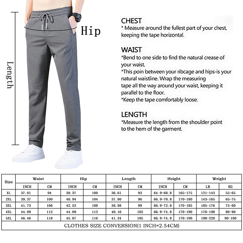 Jodimitty Men's Ice Silk Trousers Solid Mid-Waist Loose Breathable Straight-Leg Casual Pants Thin Quick-Drying Sports Pants