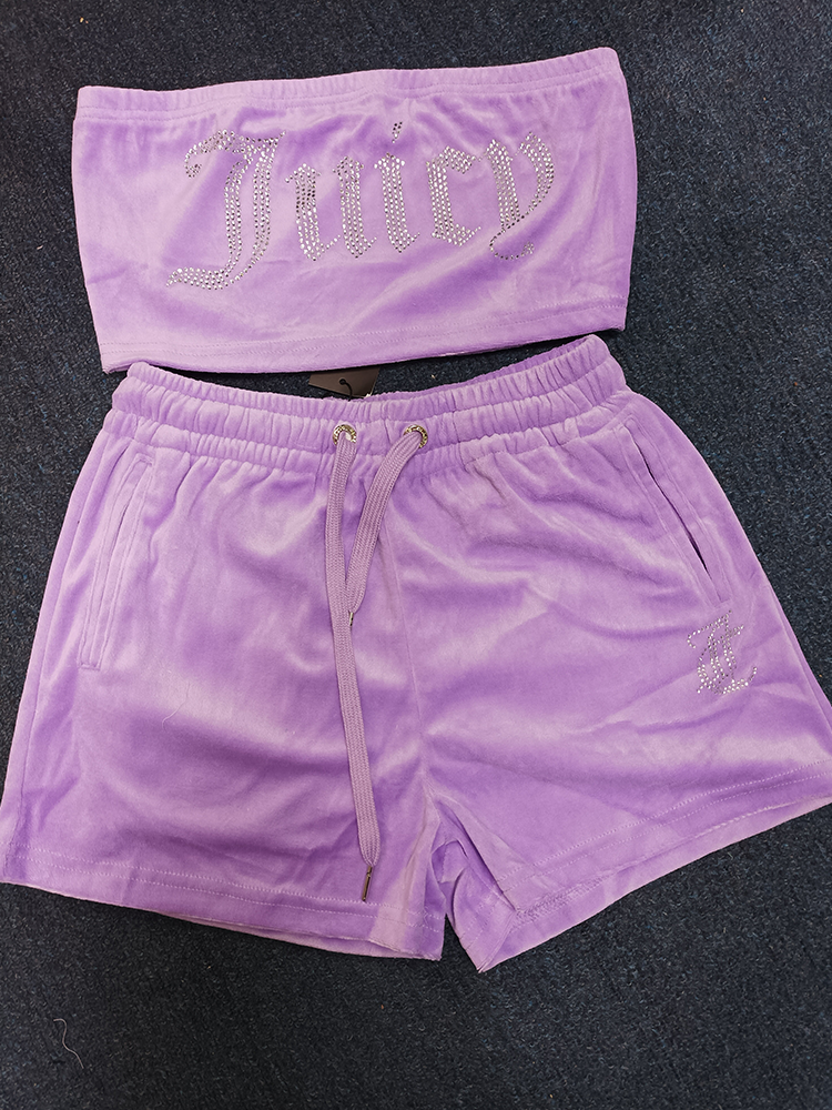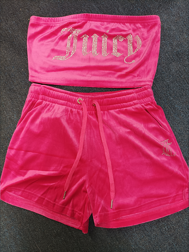 Juicy Apple Velvet 2 Pieces Sexy Tube Crop Top Casual Drawstring Shorts Set Loose Women Summer Clothes Tracksuit