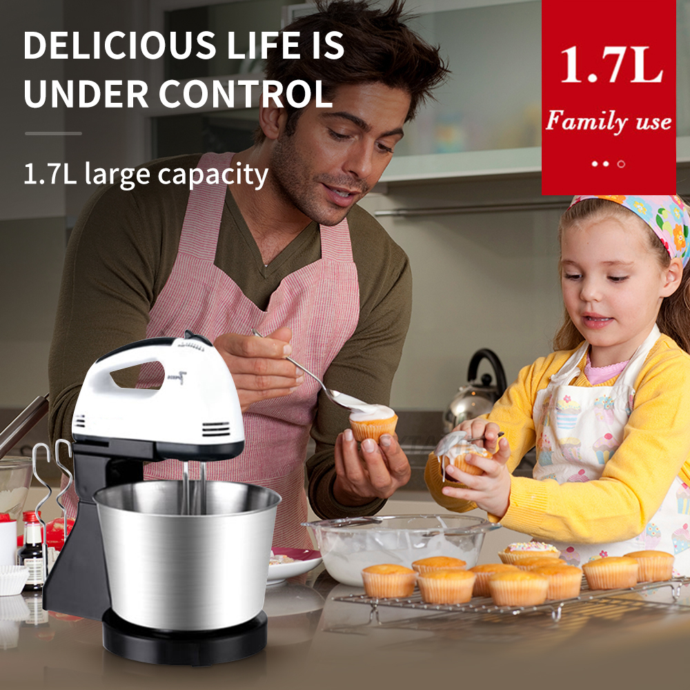 Feature : Stand Stainless Steel,Dual-function hand mixer and stand mixer,Planetary Cooking Machine,100W,Electric Kitchen Mixer