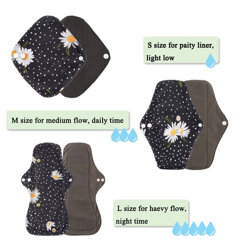 Washable Period Panty Liner Sanitary Towels Reusable Bamboo Charcoal Sanitary Pads Women's Menstrual Cotton Pads For Monthly