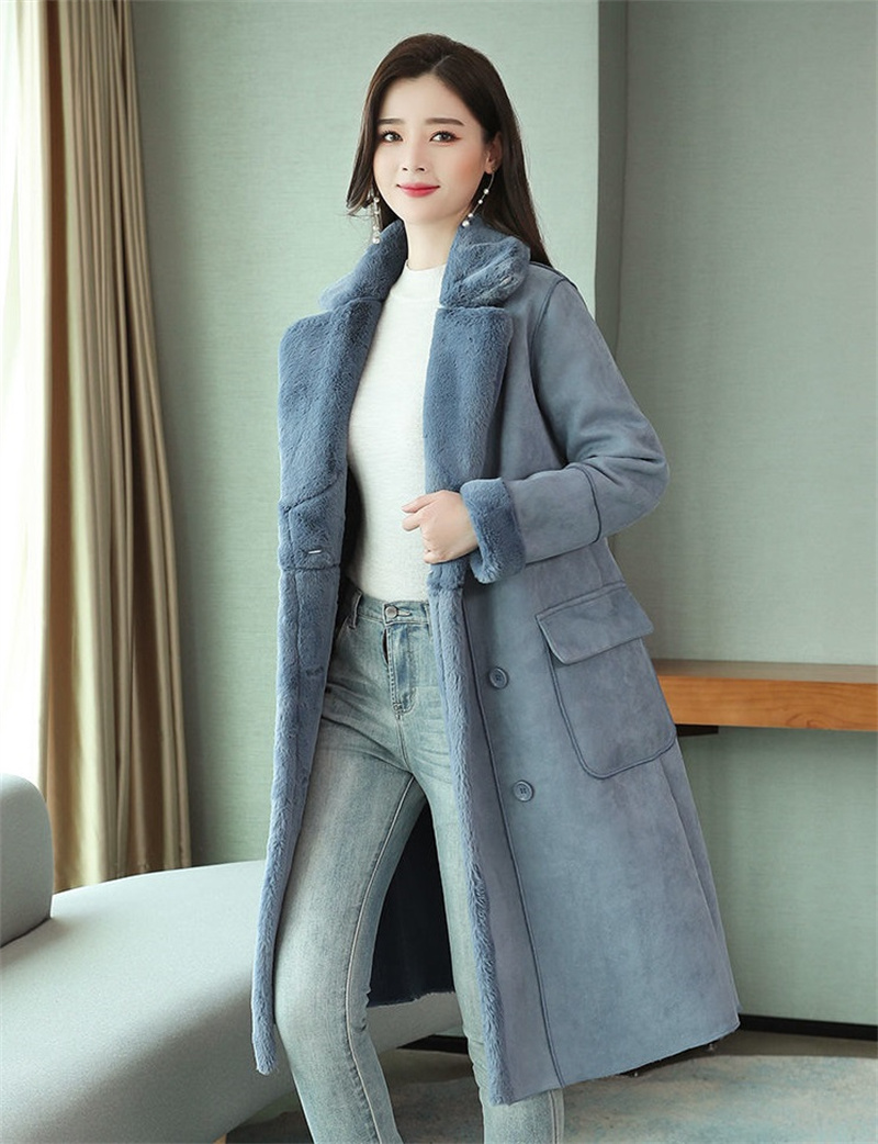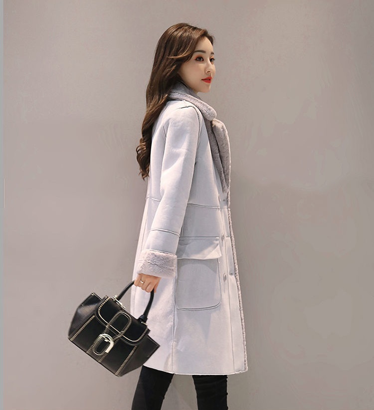 Lamb Wool Coat Female Winter ThickVelvet Thick Suede Coat Mid-length Fur One Lapel Coat Commuter Buttons Splicin
