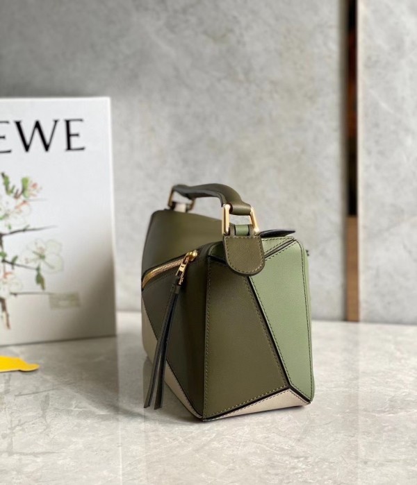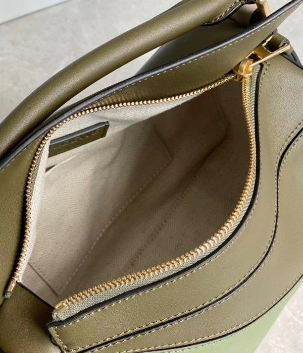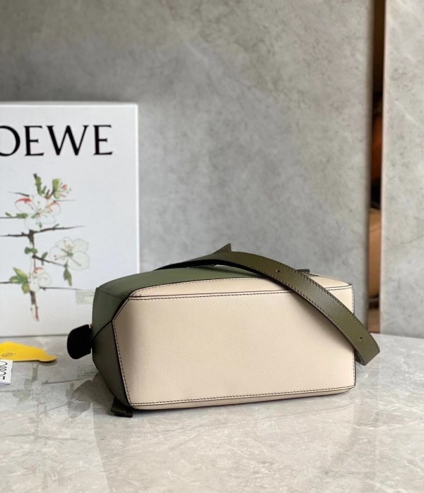 Loewe Puzzle Small Bag In Green/Oat Calfskin