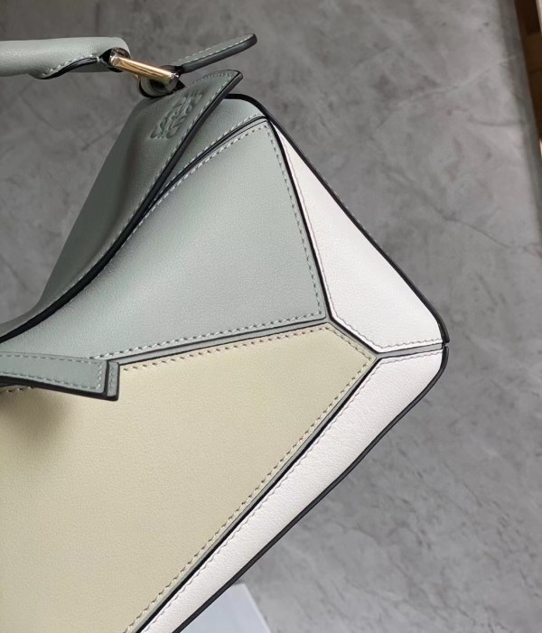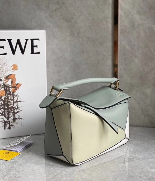 Loewe Puzzle Small Bag In Grey/Cream/White Calfskin