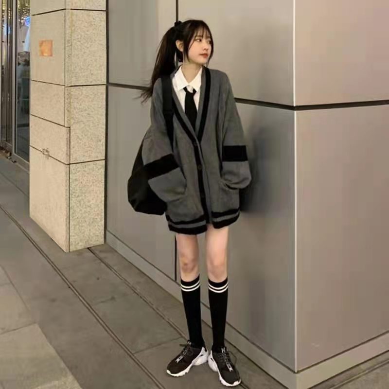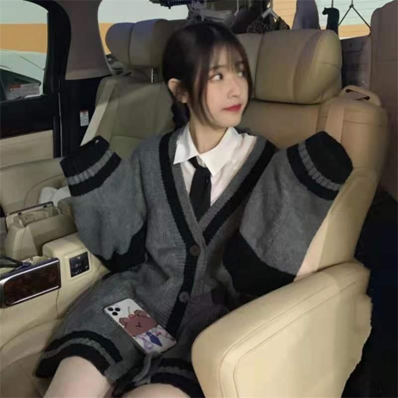 2021 autumn and winter new Korean version of the retro loose V-neck sweater cardigan jacket female student slim knit sweater top