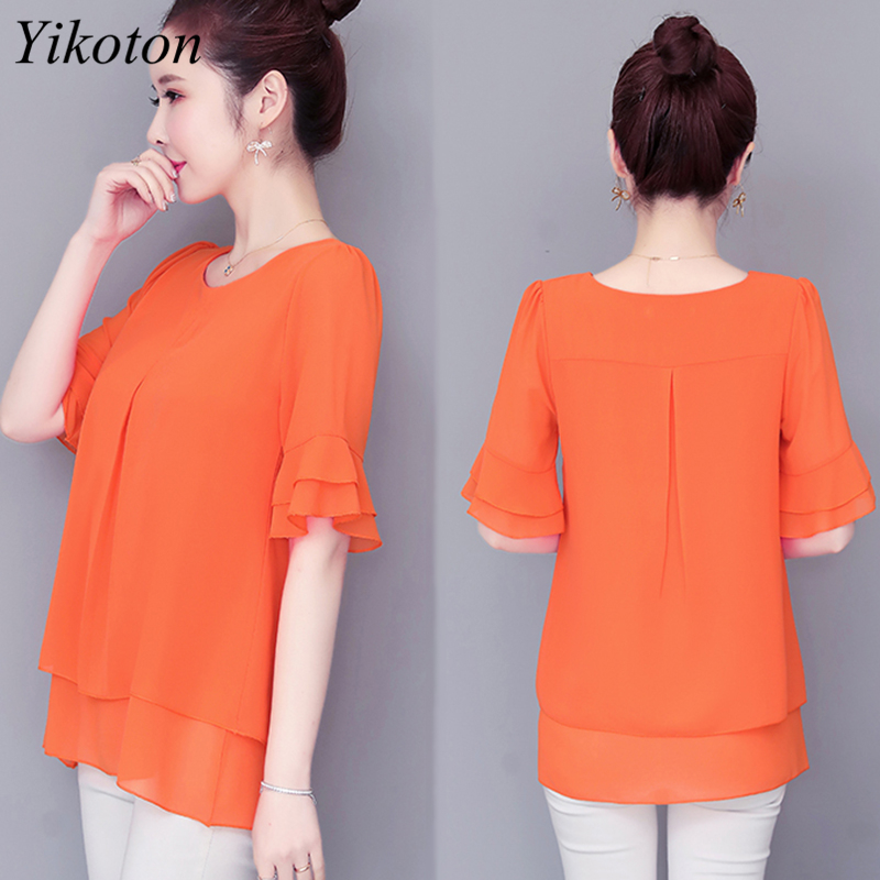 Loose Chiffon Blouses and Shirts Top Woman Casual Summer Ladies Office Work Shirt Petal Sleeve Elegant Blouse Mujeres Blusas