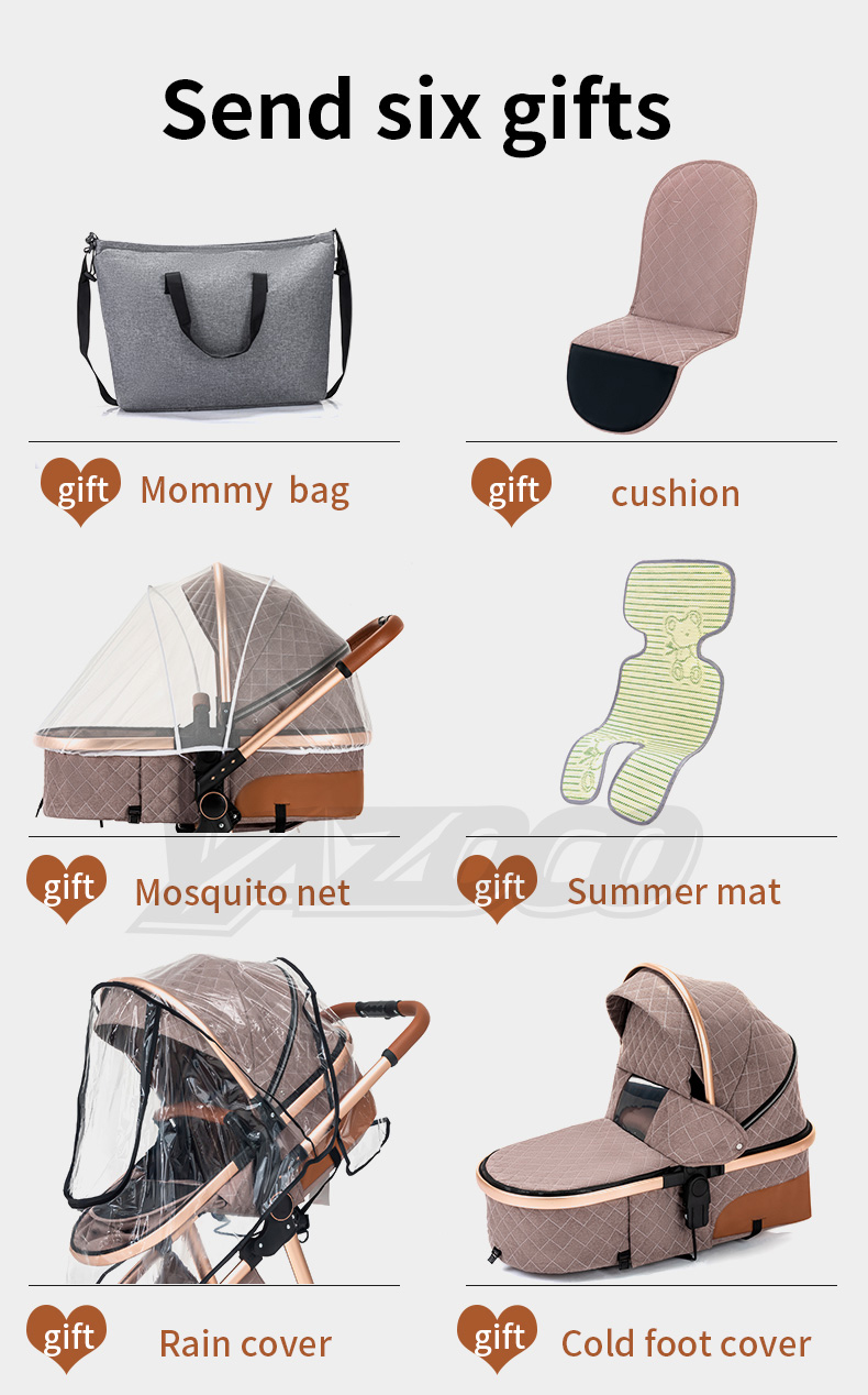 Luxurious Baby Stroller 3 in 1 Portable Travel Baby Carriage Folding Prams High Landscape Aluminum Frame Car for Newborn Baby