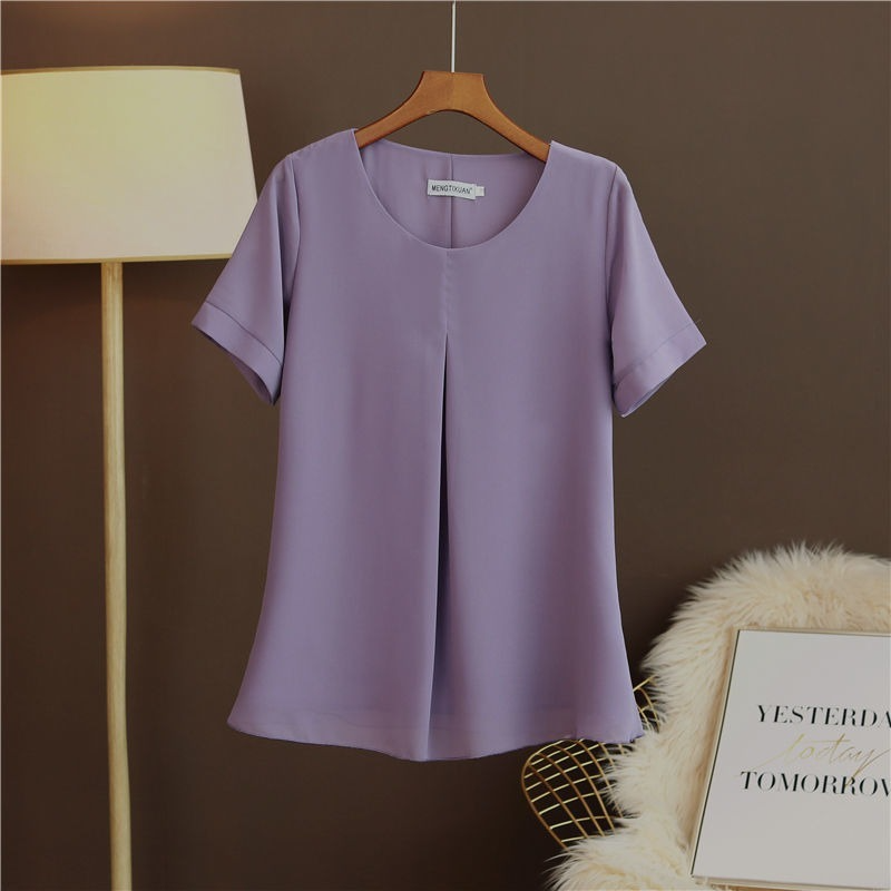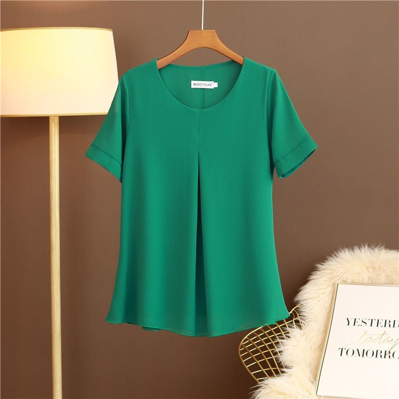 MOYISU Women Blouse Plus Size 6XL Summer Casual O-Neck Short Sleeve Chiffon Shirts FemaleTops