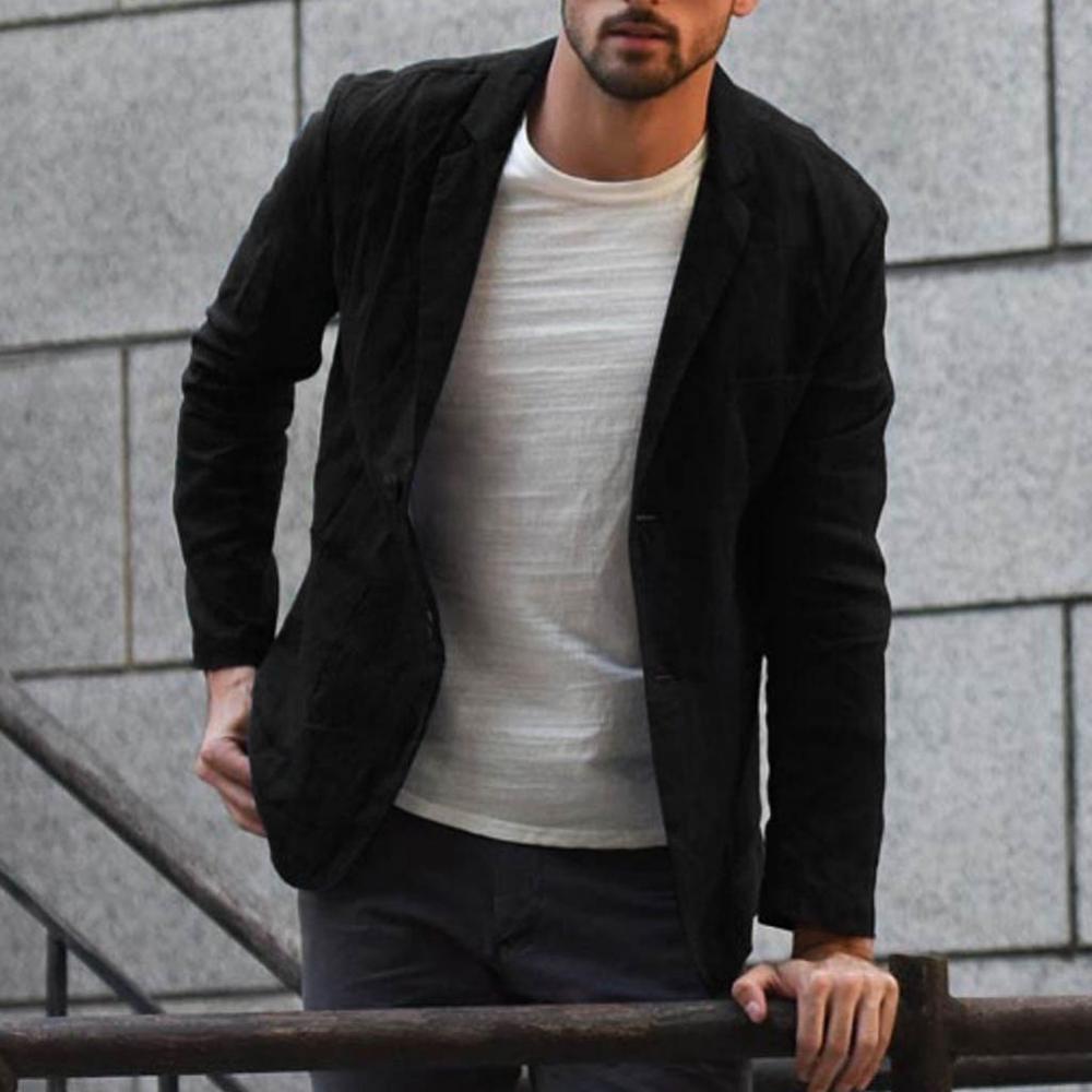 Men Suit Autumn Solid Color Long Sleeve Pockets Cotton Linen Slim Blazer Coat Jacket Casual Streetwear Clothing Sets