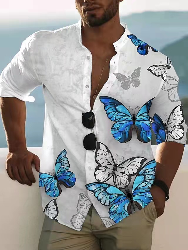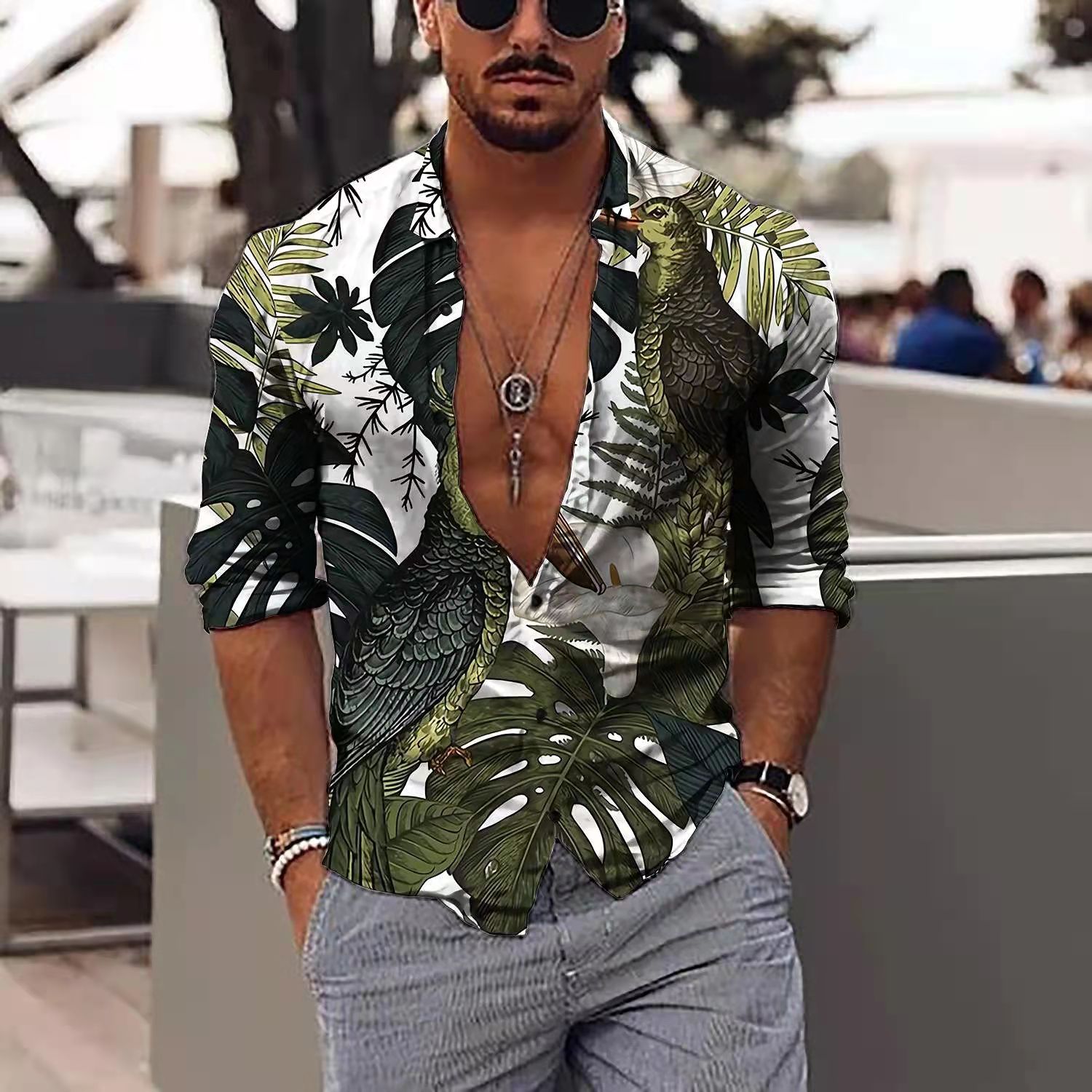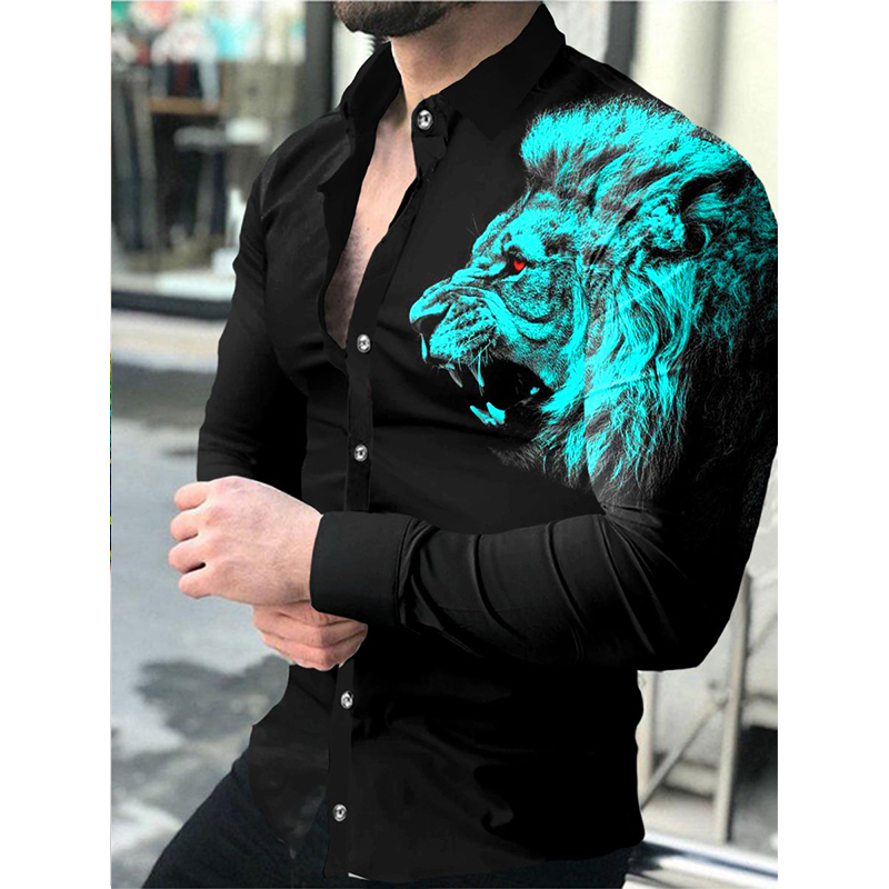 Men's Slim Shirts Spring Autumn Casual Lapel Street Animal 3D Printing Long Sleeve Oversized Shirts Men's Tops