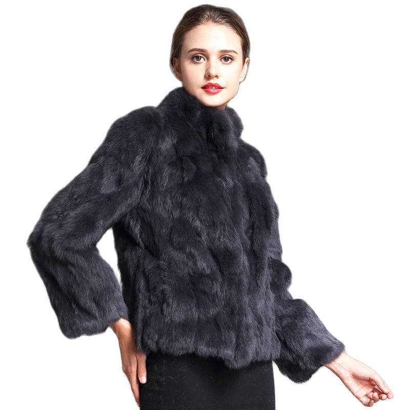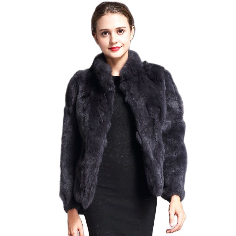 Natural Rabbit Fur Coat for Women Winter Jackets Stand Collar Real Fur Coat Female on Offer With Free Shipping