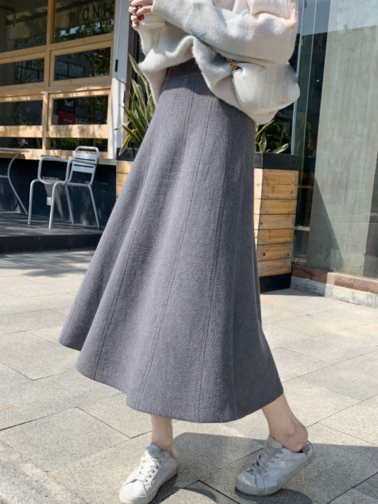 OHRYIYIE Women Thick Knit Skirt Autumn Winter Female High Waist Warm A-line Skirt Women Casual All-match Midi Long Skirt Lady
