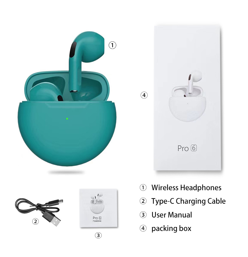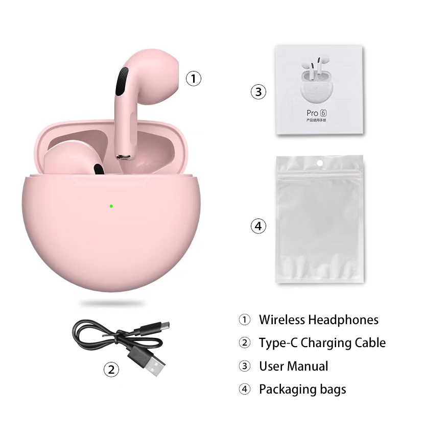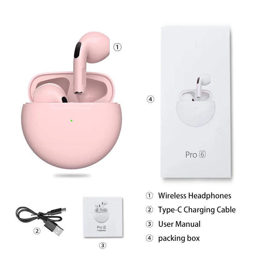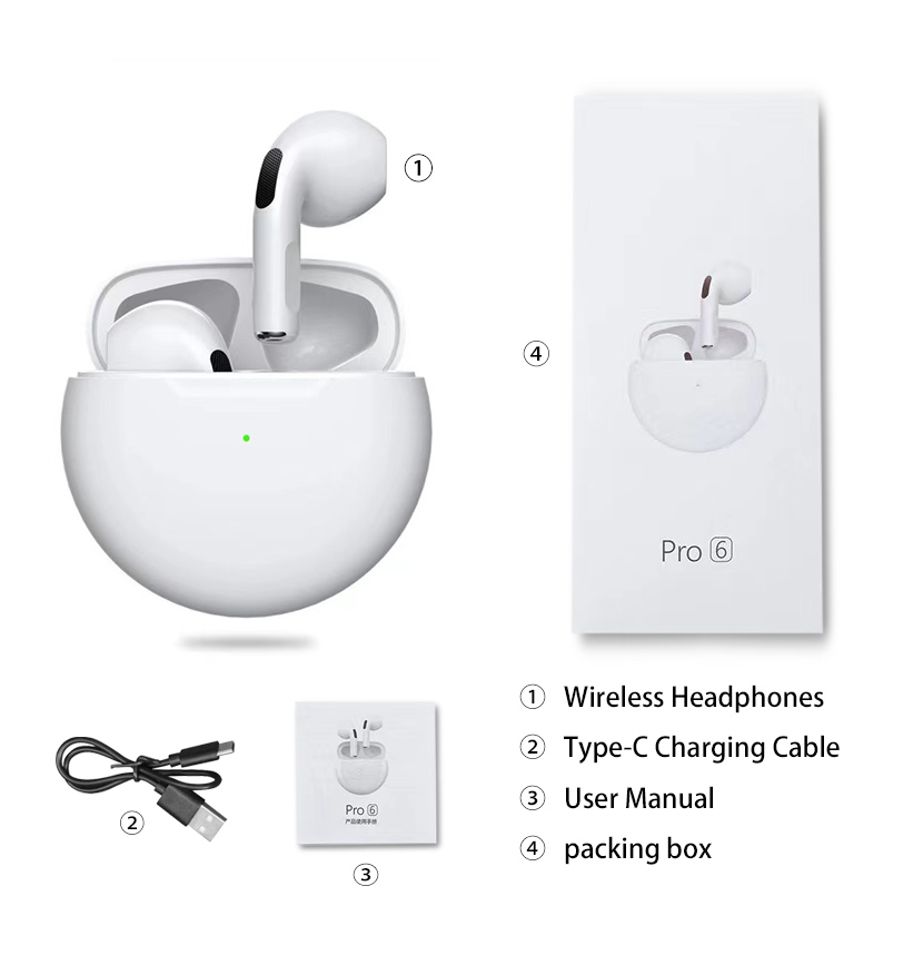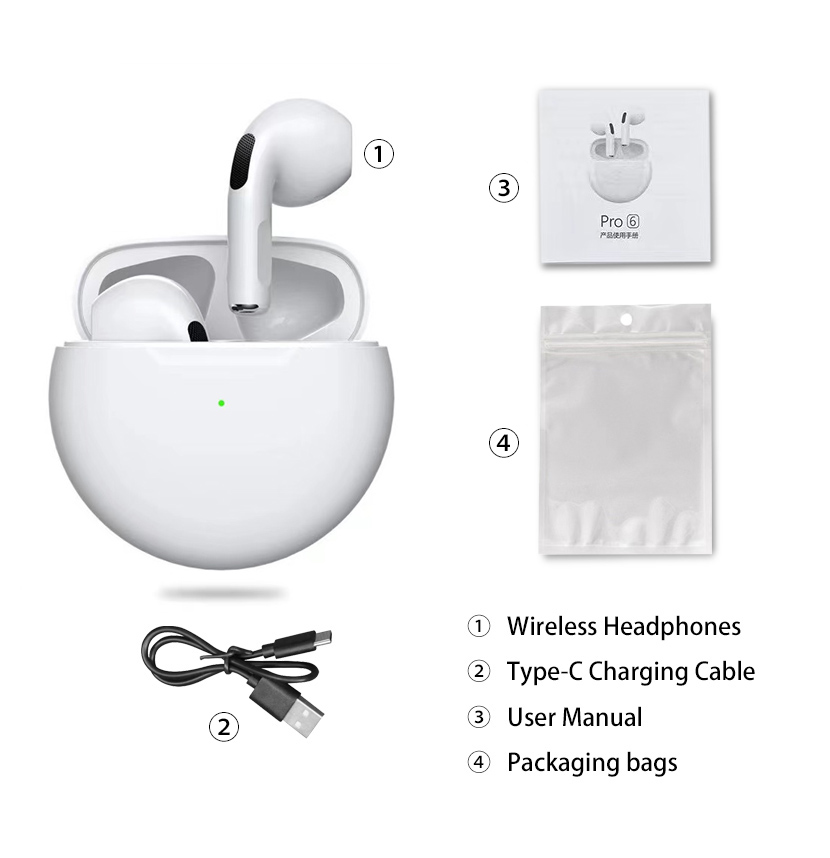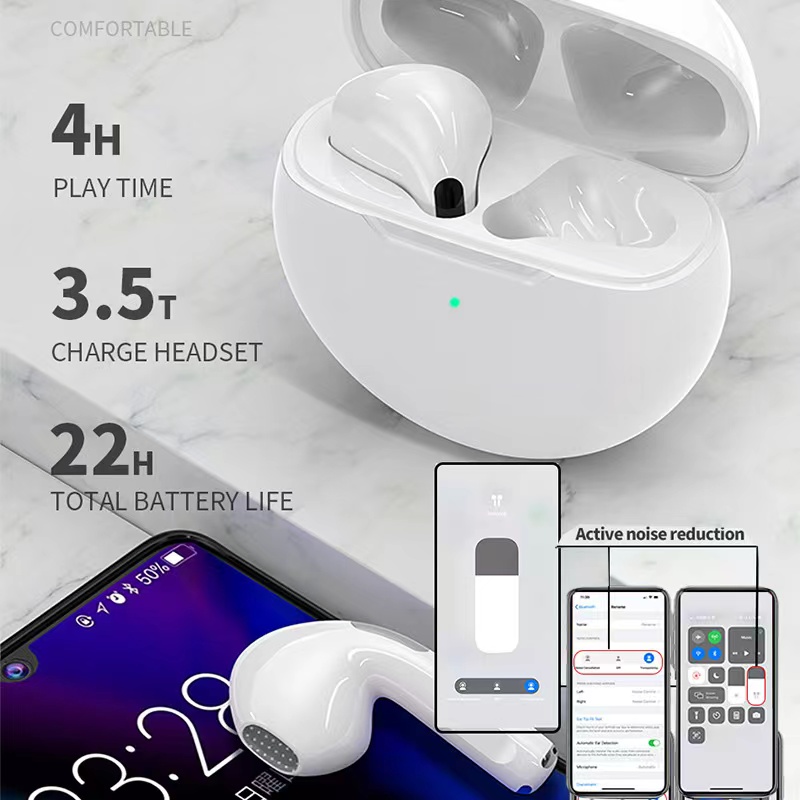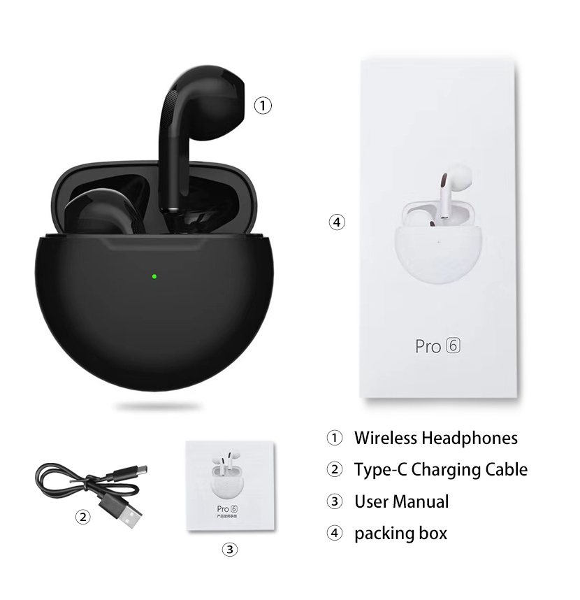 Original Pro6 TWS Headsets For Iphone Xiaomi Phones Bluetooth 5.1 Touch Control Wireless Earphones Sport Earbuds Music Headphone