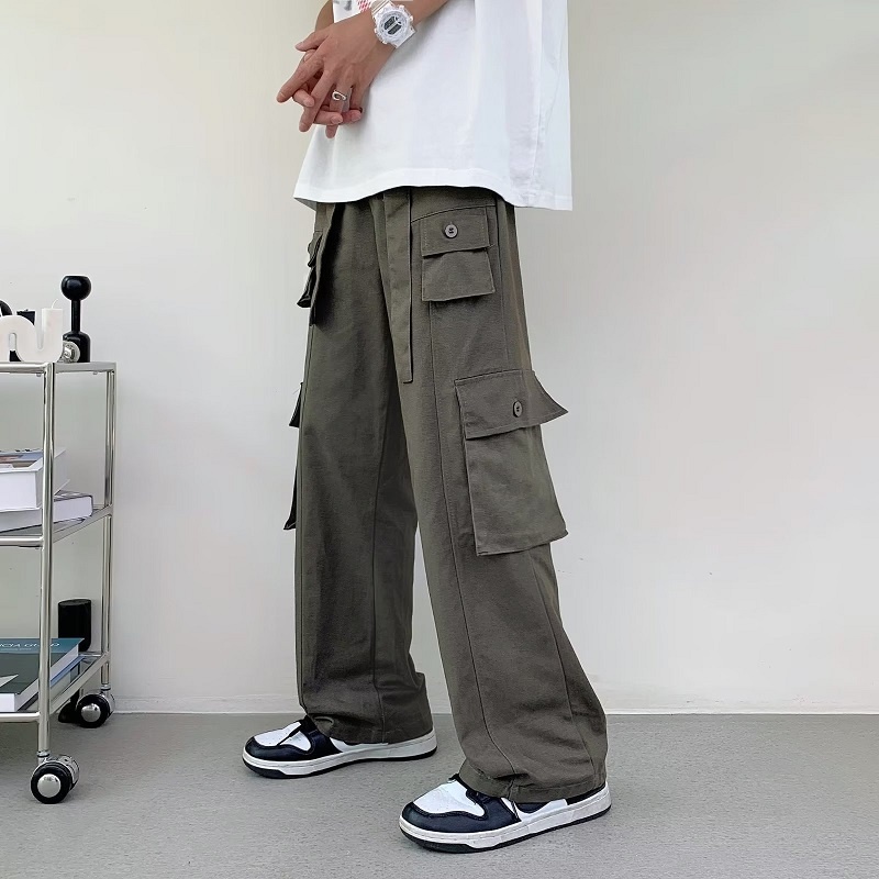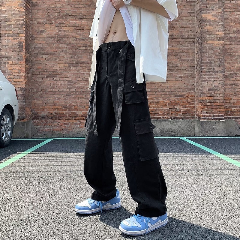 Overalls men's Hong Kong Style Multi Pocket loose youth casual pants retro versatile straight pants