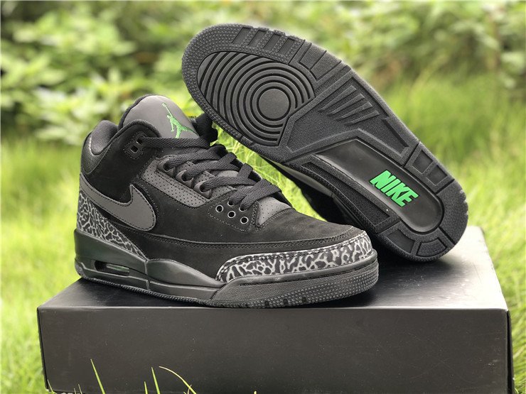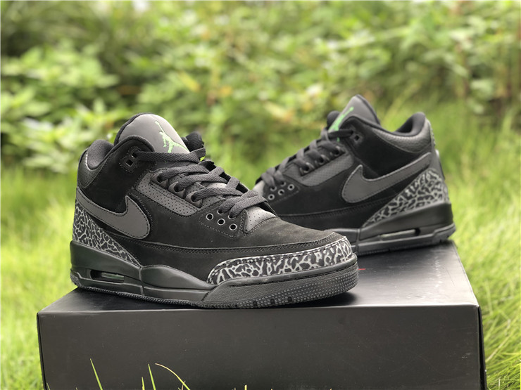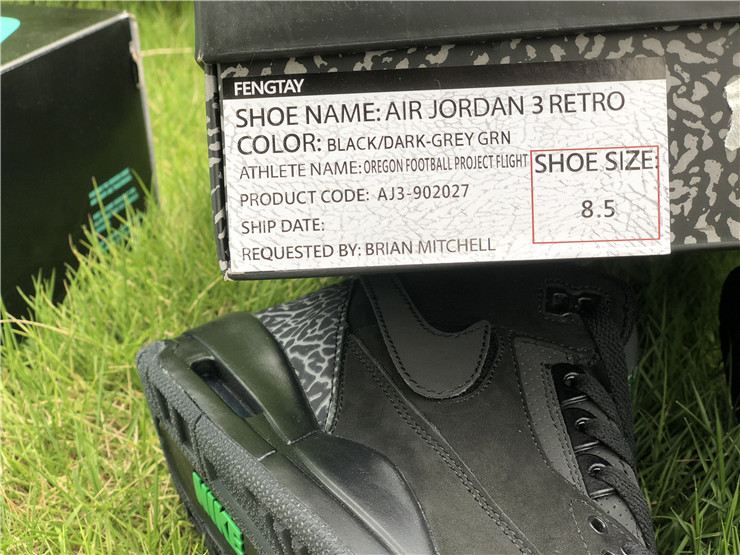 PK AIR JORDAN 3 OREGON BLACK DARK GREY GREEN 3M REFLECTIVE