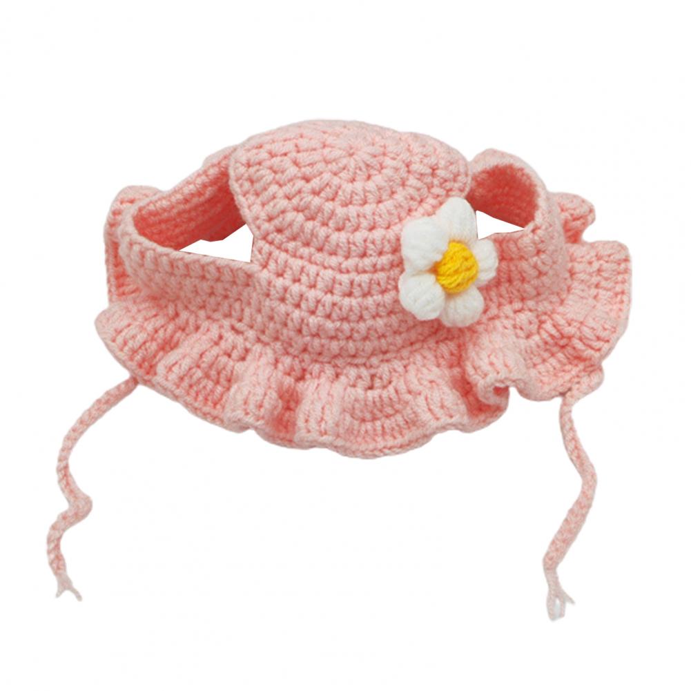 Pet Hat Delicate Hemming Pendant Decor High Elasticity Cute Pet Adjustable Strap Knitted Hat for Party