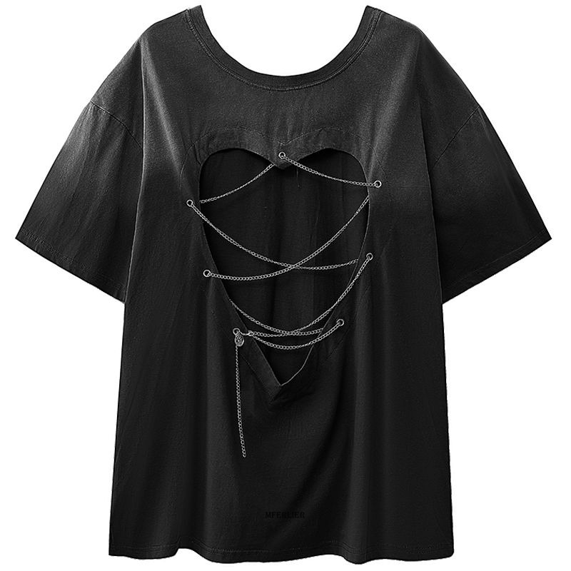 Plus Size 6XL 150kg Summer Short Sleeve Cotton T-Shirt Female Harajuku Casual Hearted Chain Tees Loose Oversized Top