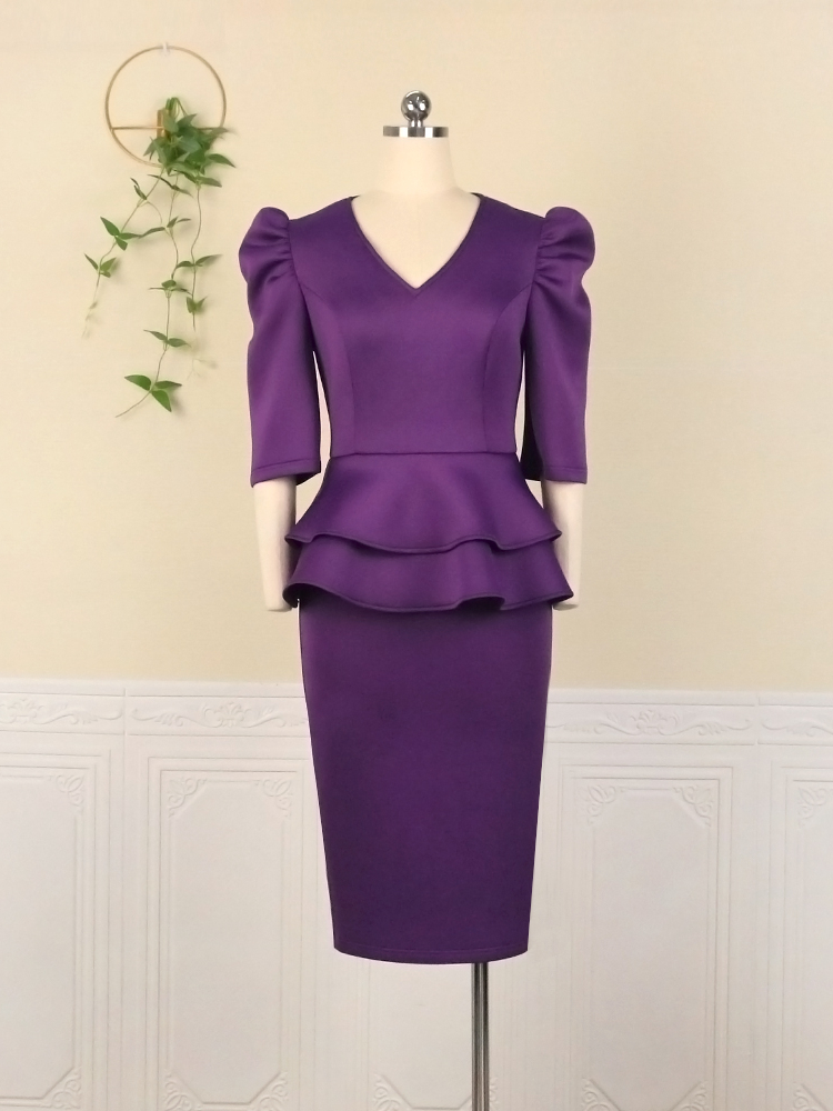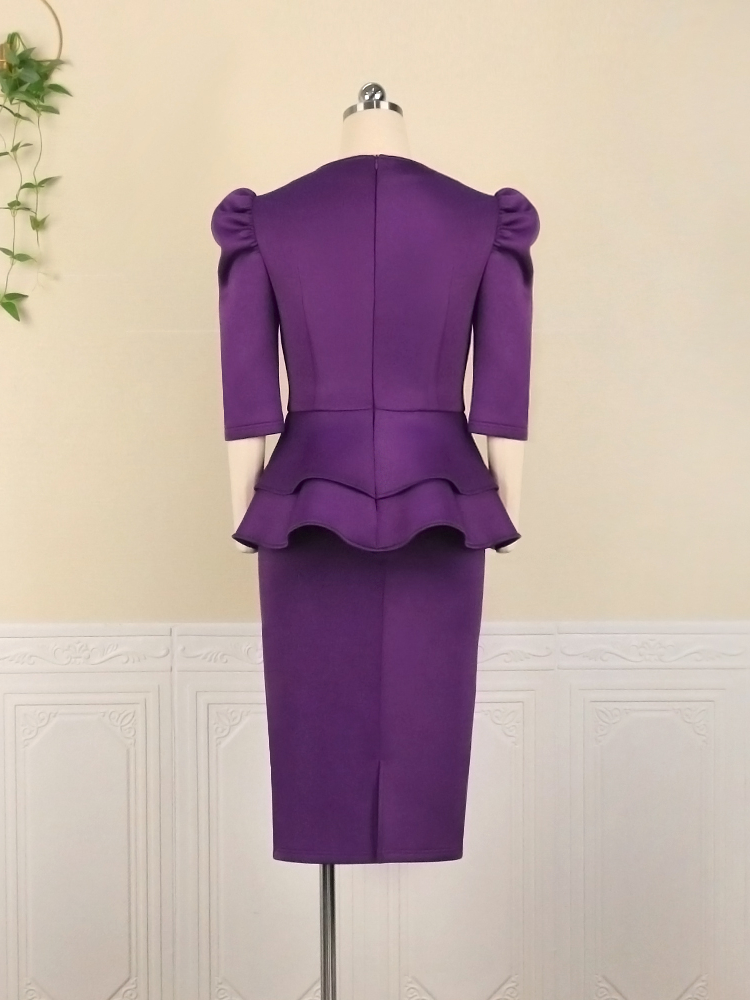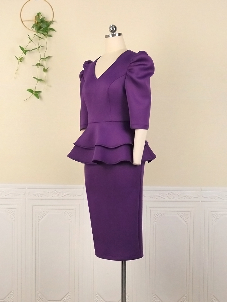 Plus Size Sets Women Two Piece V Neck Half Sleeve Peplum Tops High Waist Pencil Skirt Eveing Occasion Event Party Suits Autumn