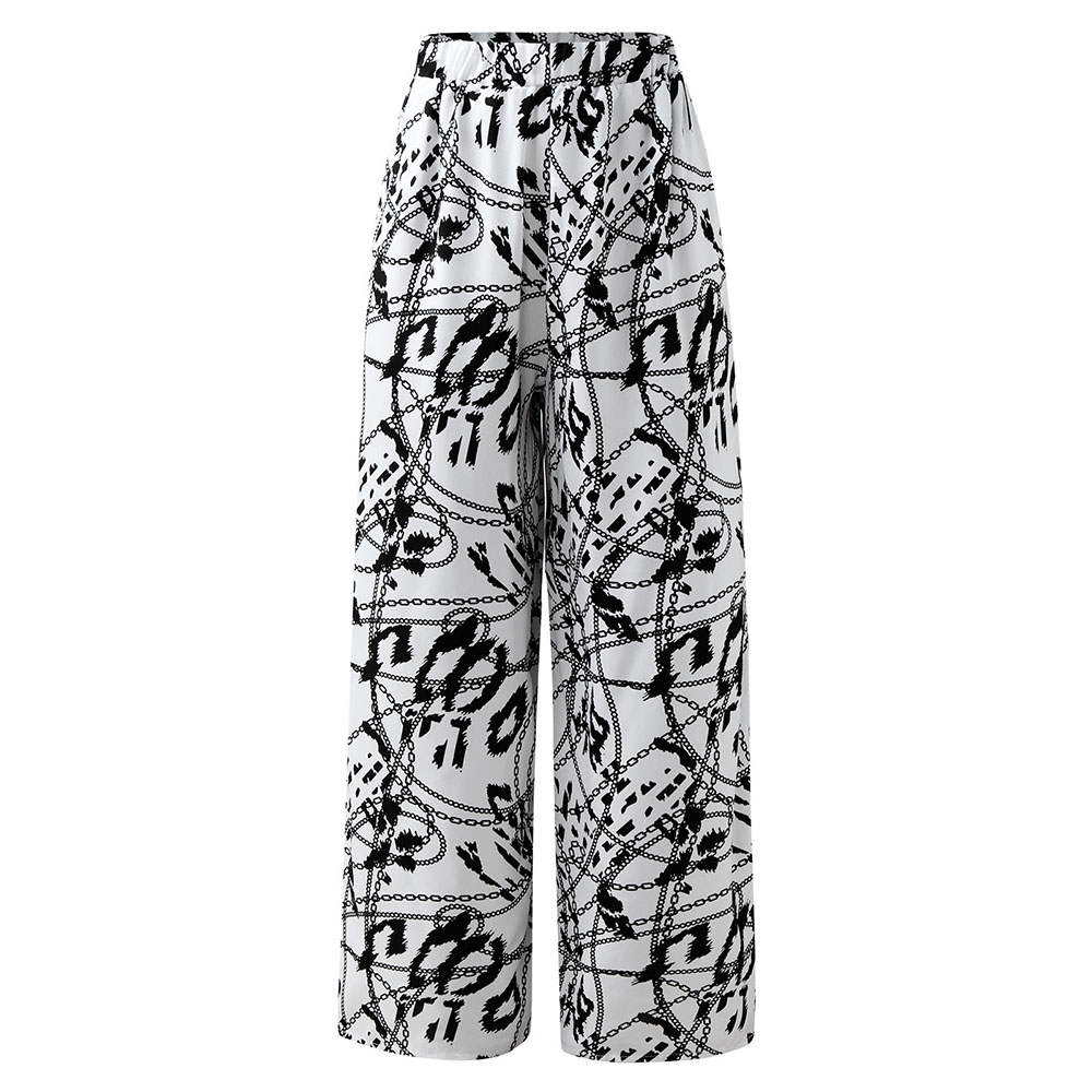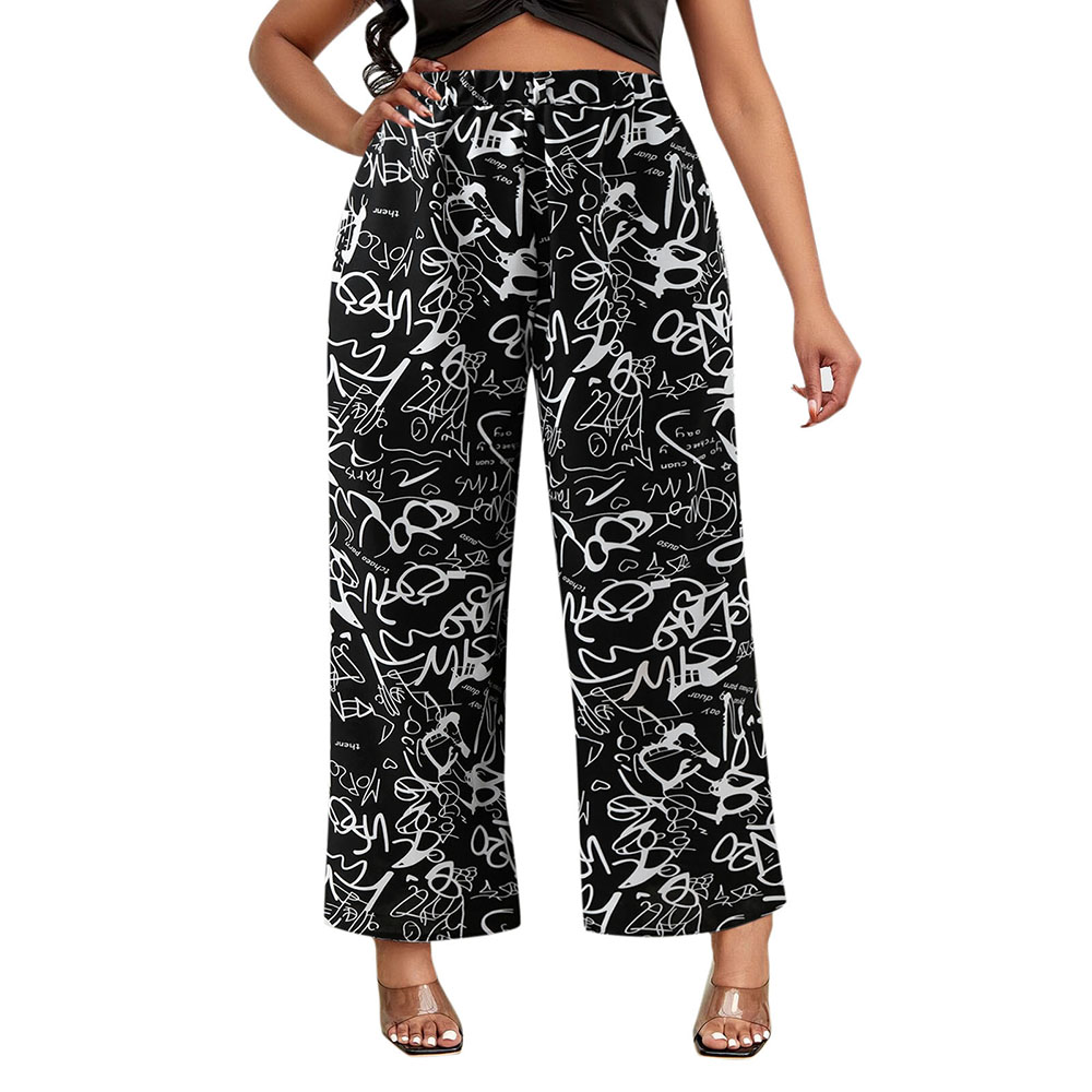 Plus Size Wide Leg Pants Women Spring Autumn Fashion England Style Print Elastic Waist High Street Loose Women's Pants Big Size