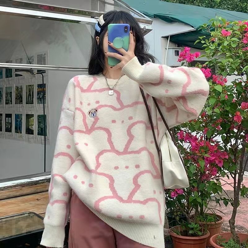 Pullover Femamle 2021 Winter Autumn Oversized Knitted Sweater Women Long Sleeve Embroidery Cartoon Thicken Pullovers Jumper Tops