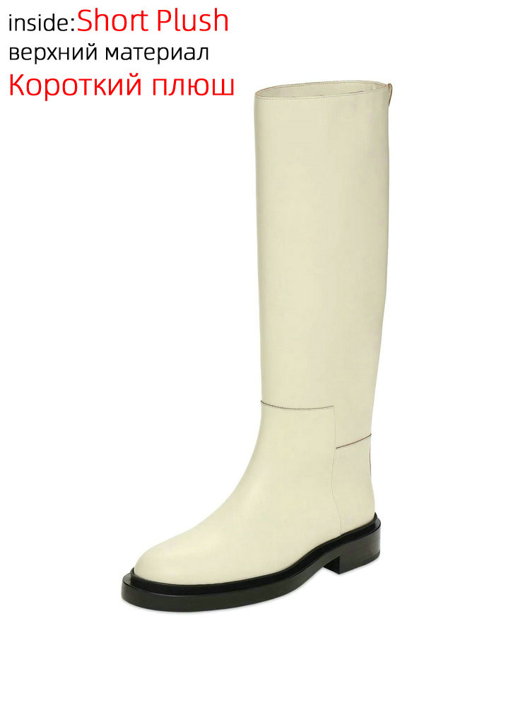 QUTAA 2023 Ins Women Knee high Boots Square Heels Motorcycle Warm Long Boots Genuine Leather Casual Shoes 34-42